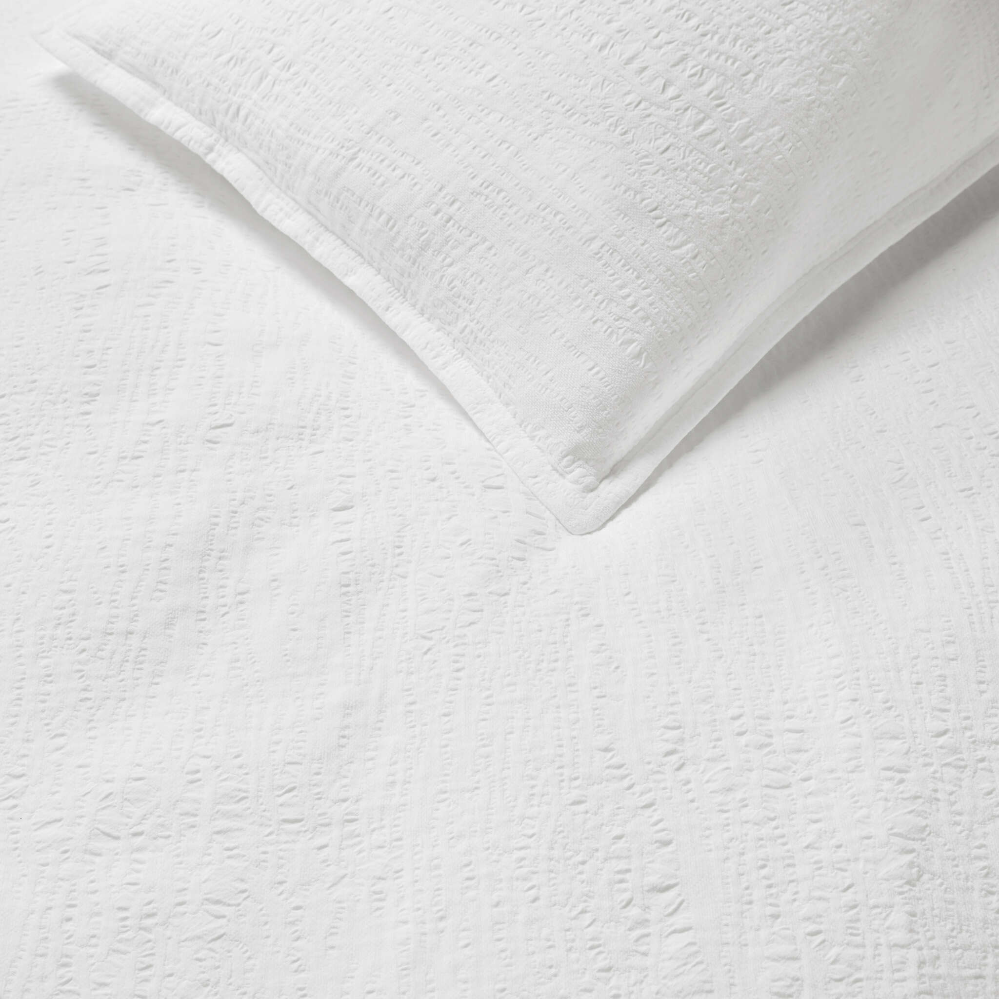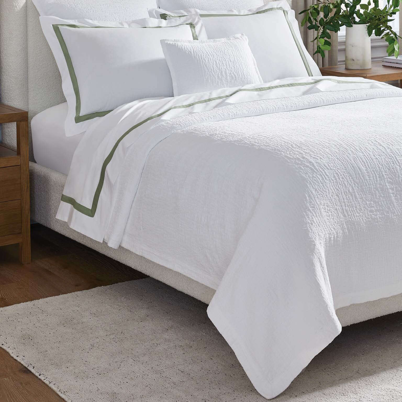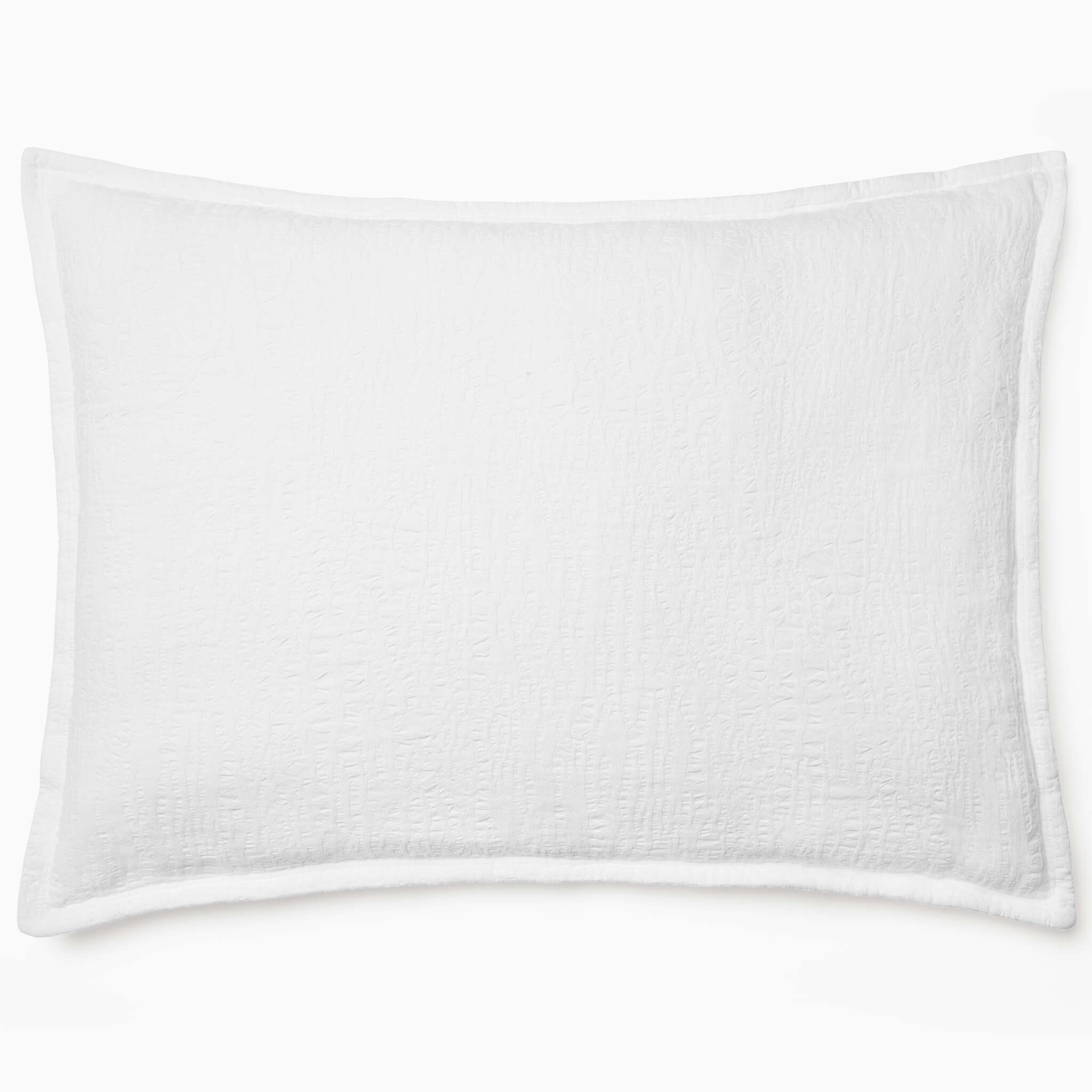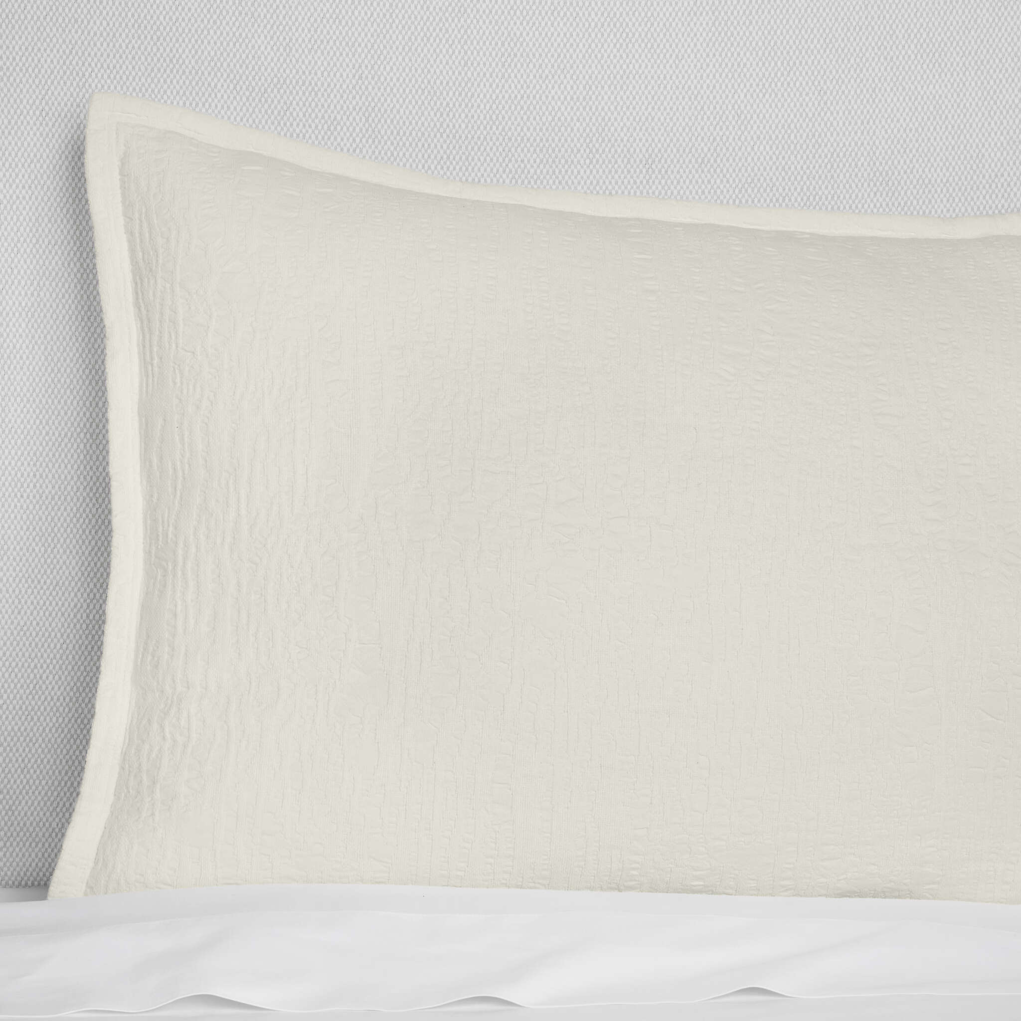There's an ease to Sabino that invites you in. Woven from 100% cotton and stone-washed for an heirloom feel, its surface holds a gently crinkled texture - soft to the touch and effortlessly relaxed. The clean lines of shortened flanges and double-needle stitching add just enough detail, balancing comfort with quiet refinement. Offered in shades of white and oyster, Sabino is a yearround layer that brings comfort and tactile interest to any bed.