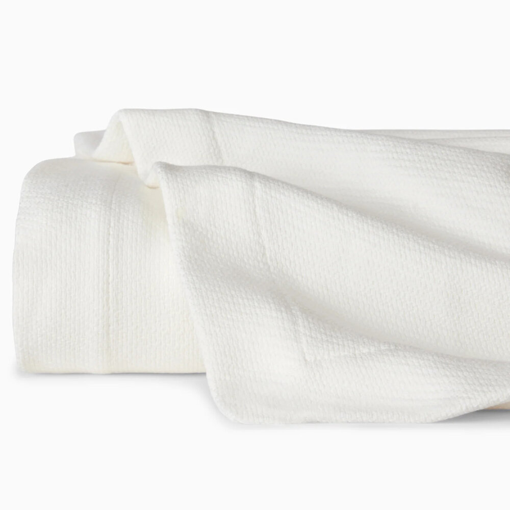 Fabric: Piece-dyed textural-weave blanket.