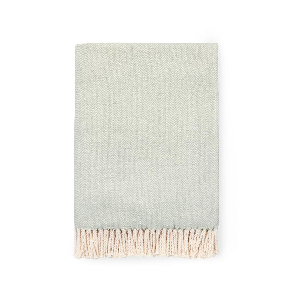 Cotton, when brushed, undergoes a transformation that gives it a plush, alluring texture this side of heaven. This throw blends soft color with white or natural in a herringbone weave and finishes it with a twisted, natural fringe.