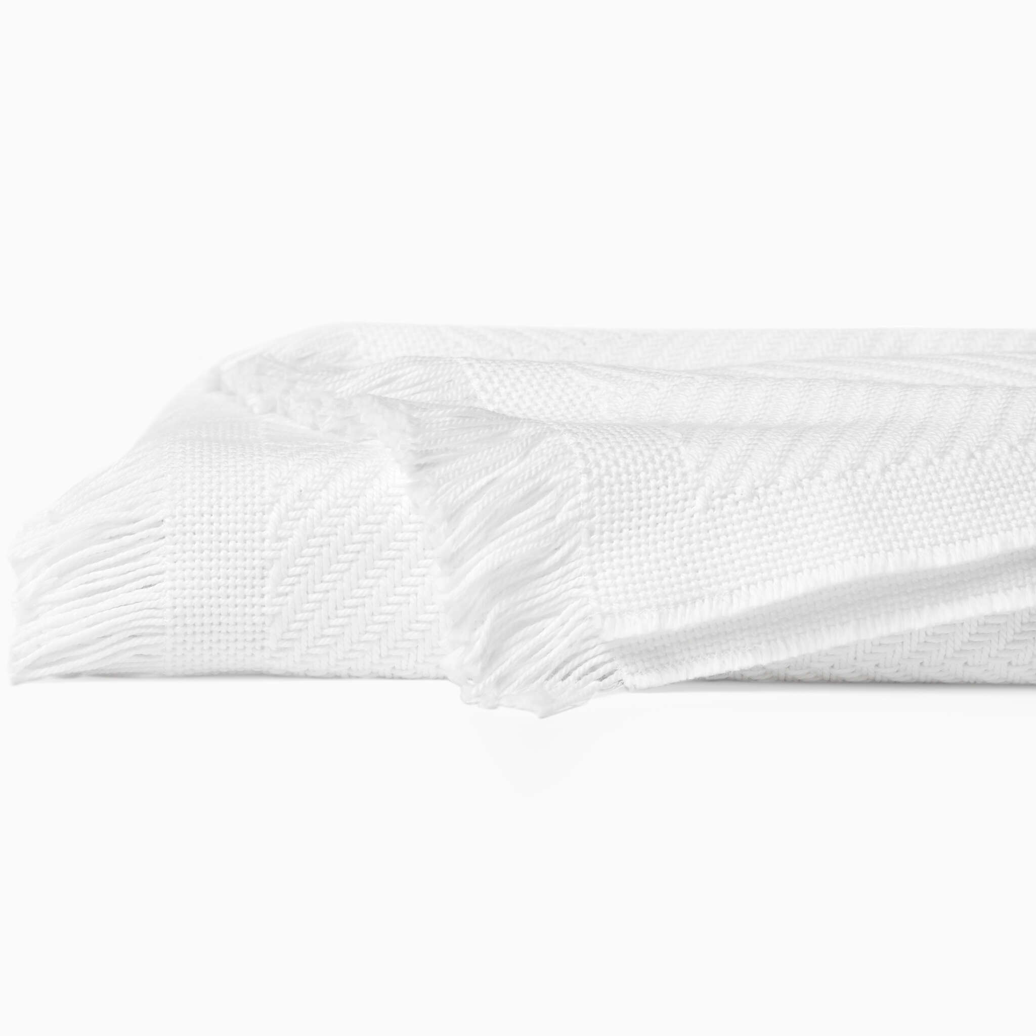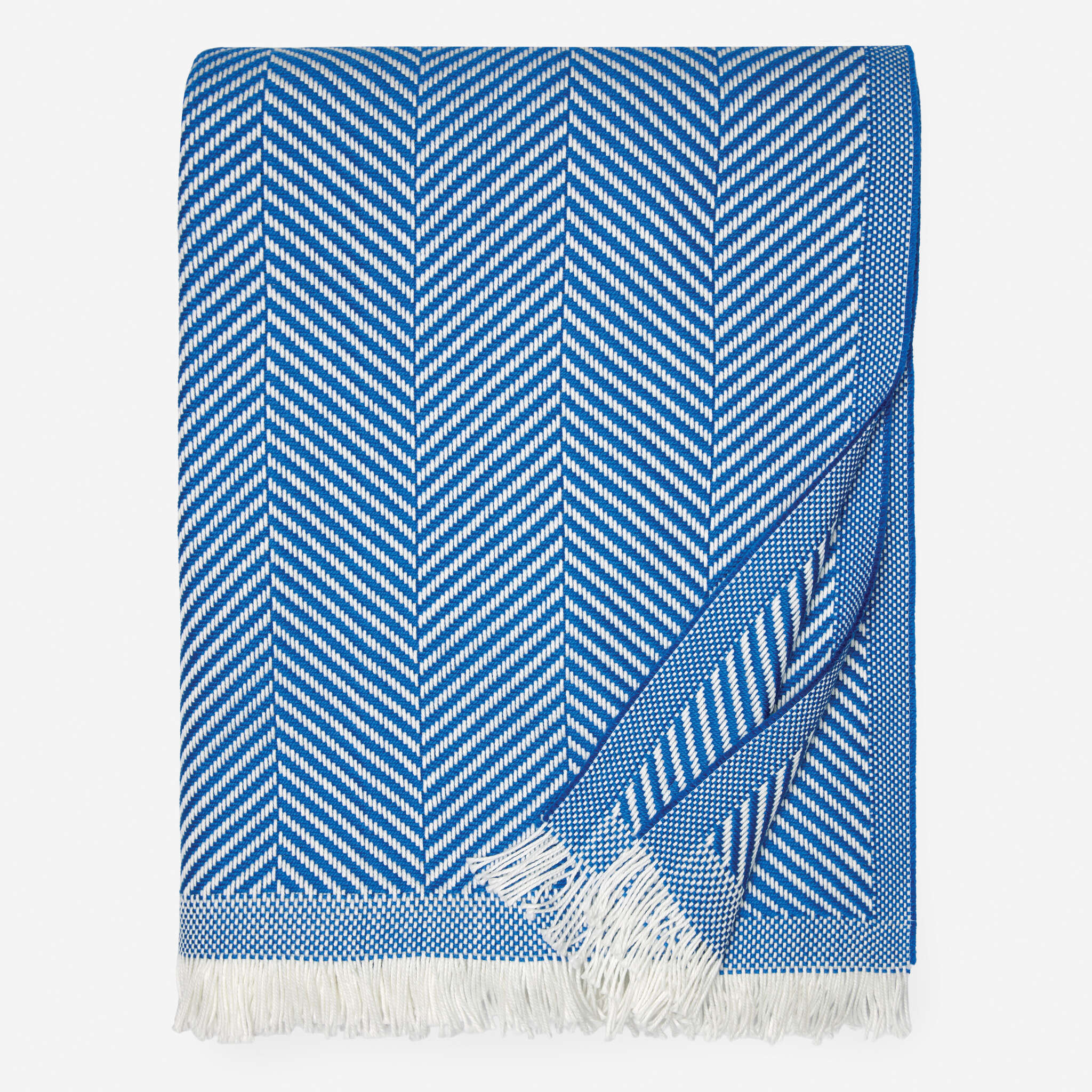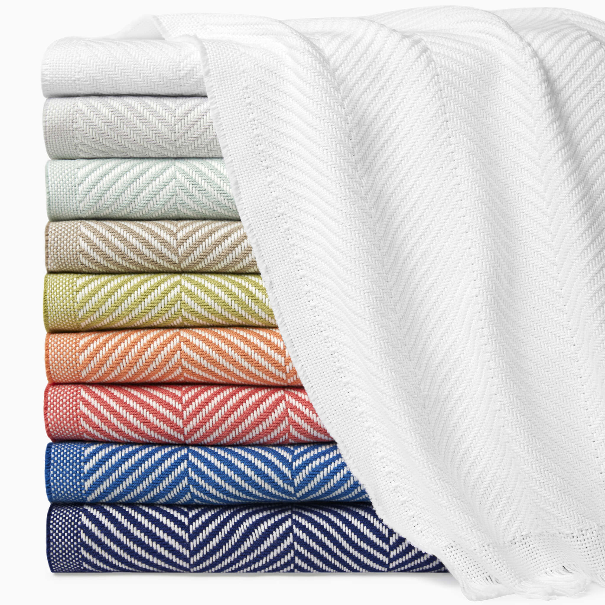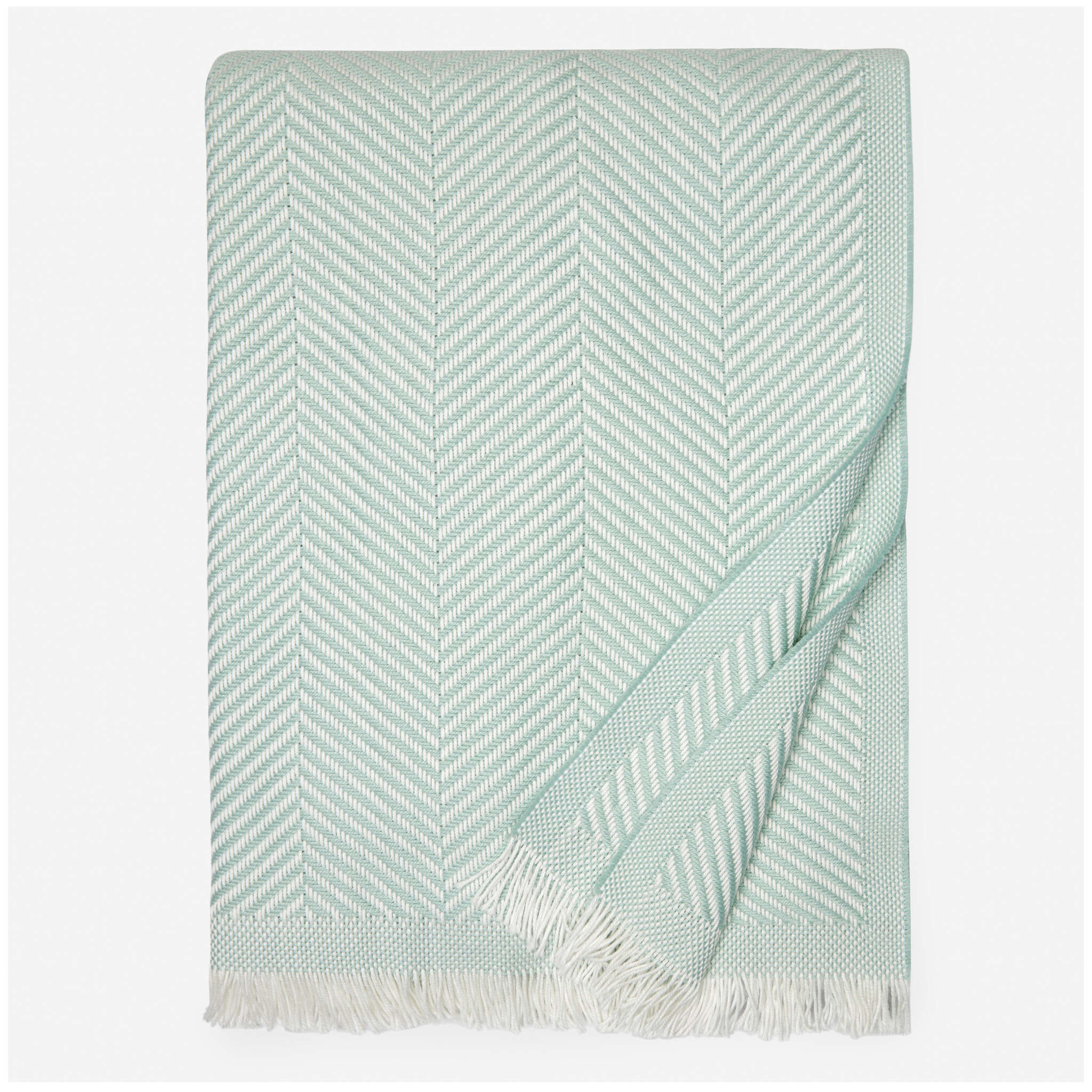 White and colorful threads are woven into a crisp herringbone pattern in Costa, a lightweight cotton throw redolent of sun-dappled mornings in Nantucket.