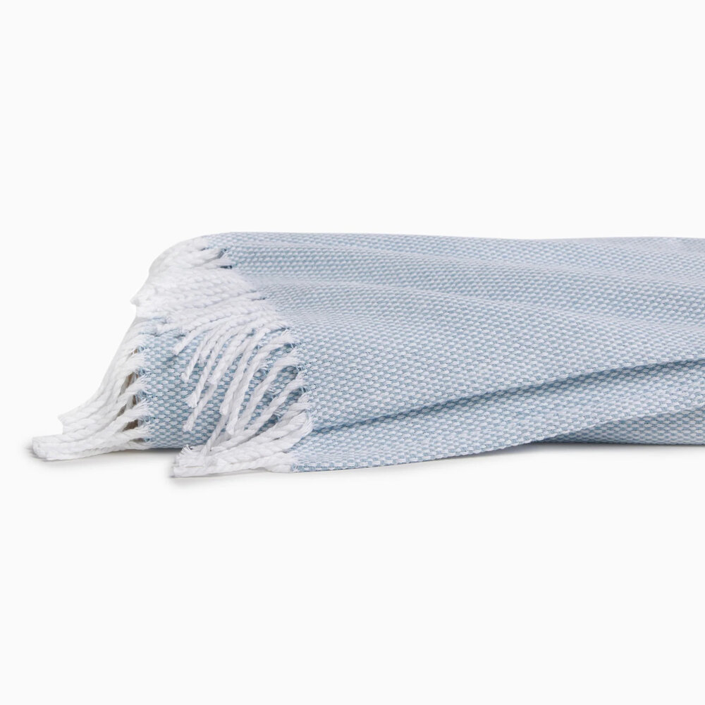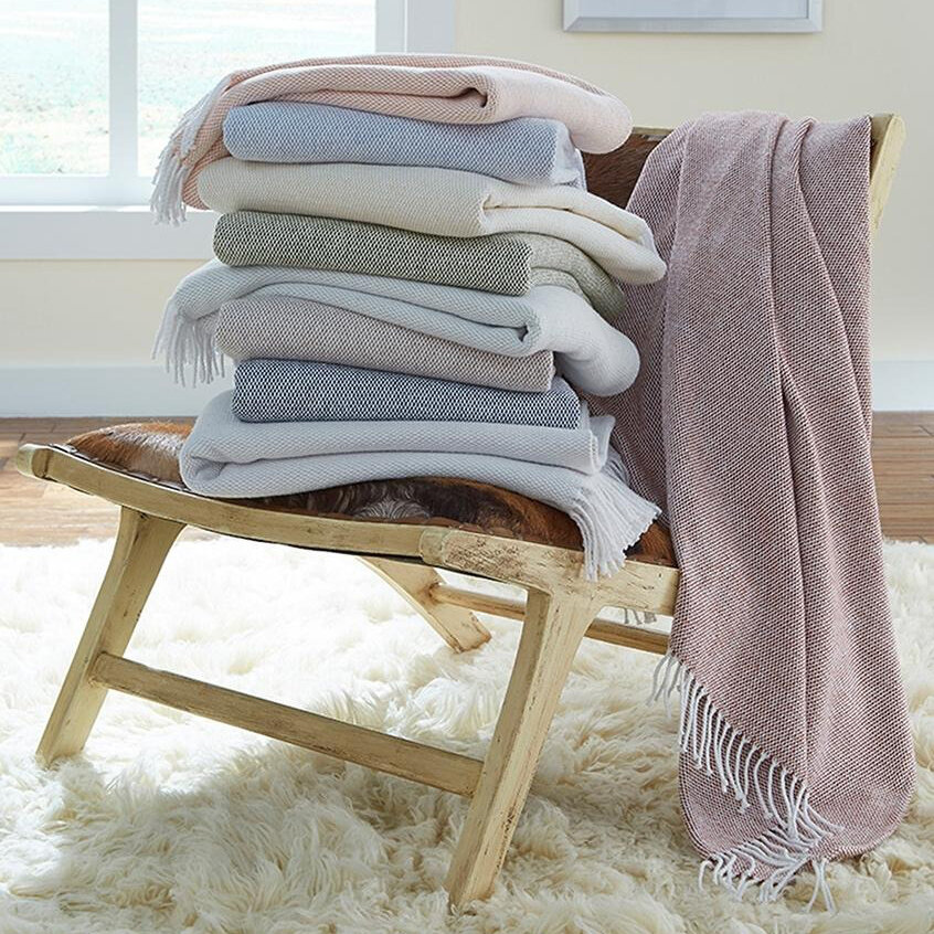 Finishing: Brushed cotton basket weave. Twisted fringe on Throw.