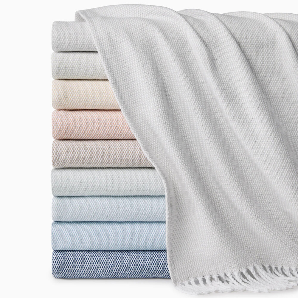 Terzo pillows and throws feature a classic basket weave pattern in soft, versatile colors that are welcoming in any room. Graceful and elegant, it is crafted from pure cotton and the pillows are filled with feather and down.