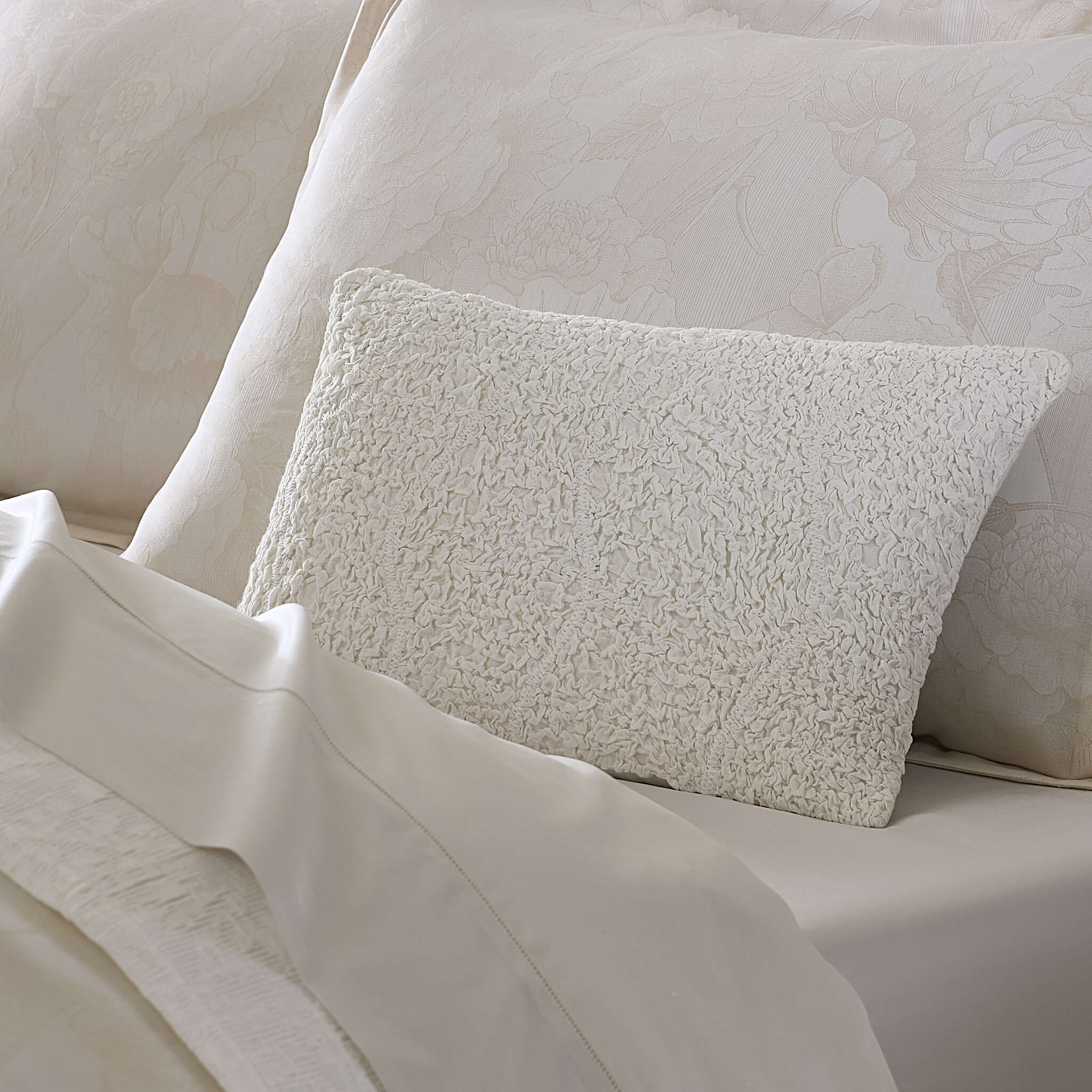 Teramo embodies quiet luxury with its artfully ruched linen shell, lending depth and dimension to a soft, neutral palette. A stunning complement to the Adrina bedding collection, or a compelling enhancement to any corner, the decorative piece is a perfect balance of texture, simplicity, and refinement.