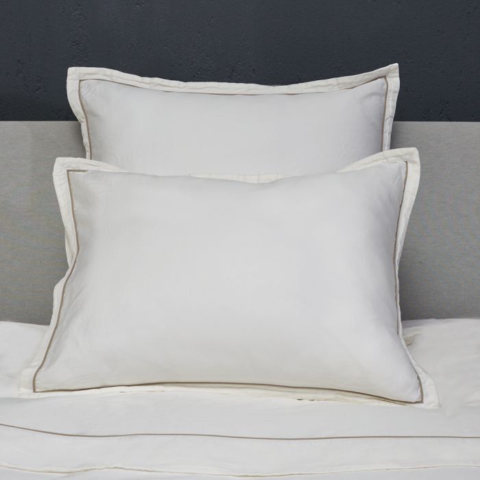 Duvet Cover: Finished with a 1" border with coordinated sateen piping; reverses to solid sateen. Knife-edge. Buttons closure. Inside sateen ties.