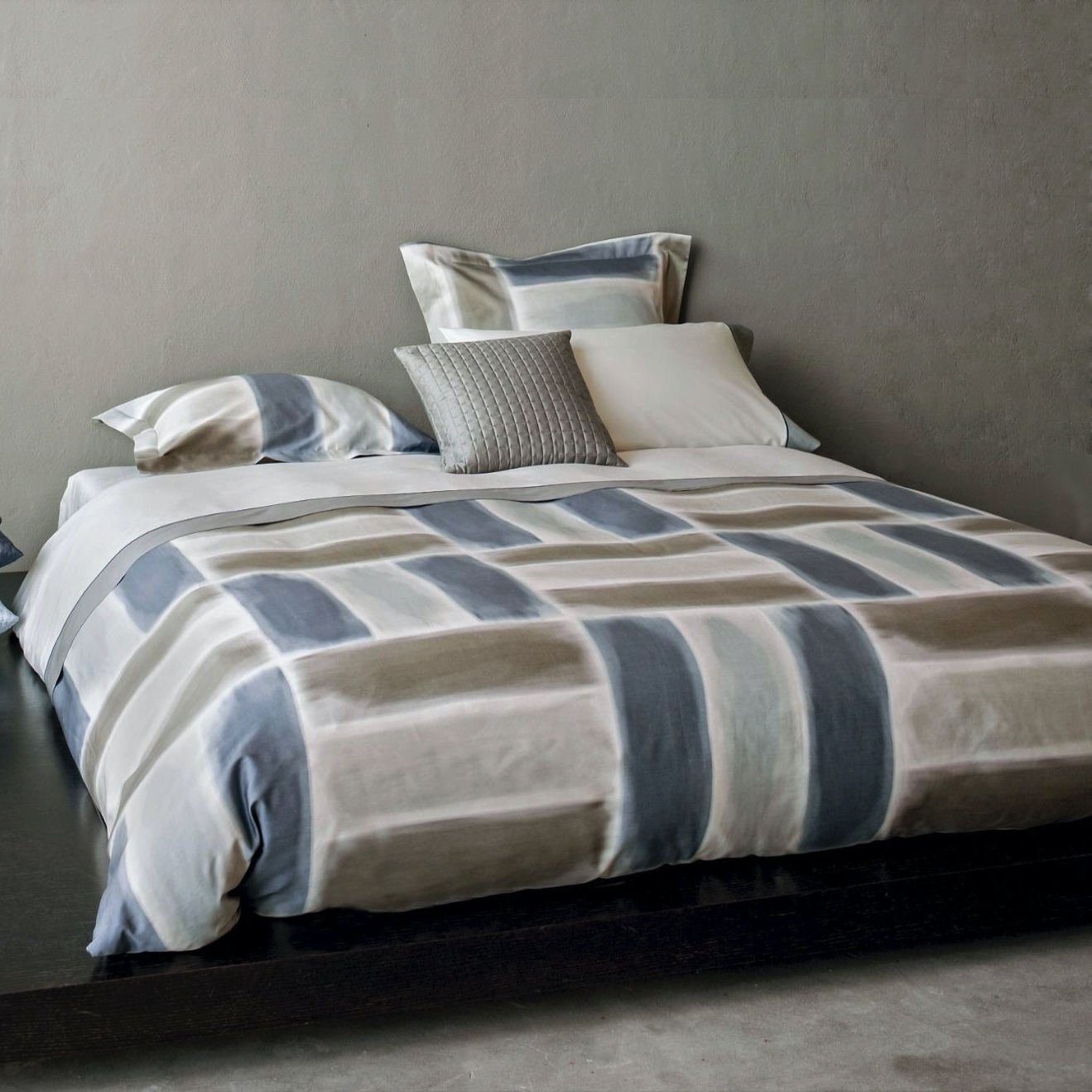 The Gouache collection has been inspired by a famous painter known for his brush strokes which fill up rectangles raising them to a metaphysical dimension. The result is a contemporary canvas of