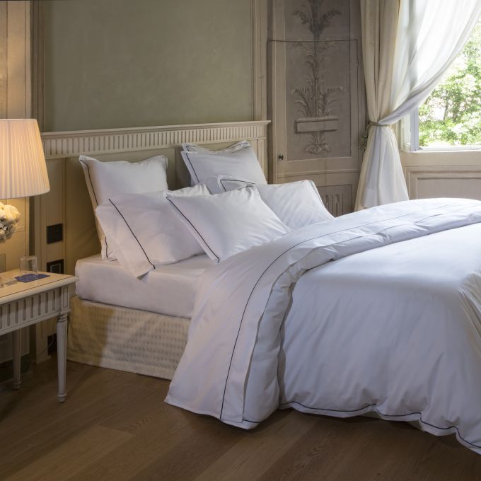 Luce is made of soft and elegant 600TC percale further refined and enriched by a border of sateen piping. The border matches the background while the piping is available in several color options to match your décor or coordinate with our top of the line bed patterns. Luce was created for those who love sensible luxury and clean lines.