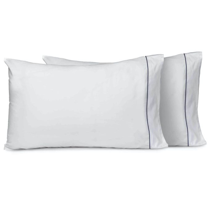Pillowcases: 2 cases; solid percale finished with a sateen piping across open end.