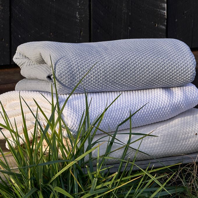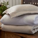 Blair is a classic diamond matelassé, done with the signature TL stonewash process. Blair is made from pure 100% cotton, dyed, and stonewashed giving you assurance that there will be no further shrinkage at home. The Blair Linen is undyed, made from a blend of cotton and linen also stonewashed with the same washing instructions. Shams are finished as shown above with a flange. Stocked in our Hudson, NY warehouse. Dutch Shams are made to order.