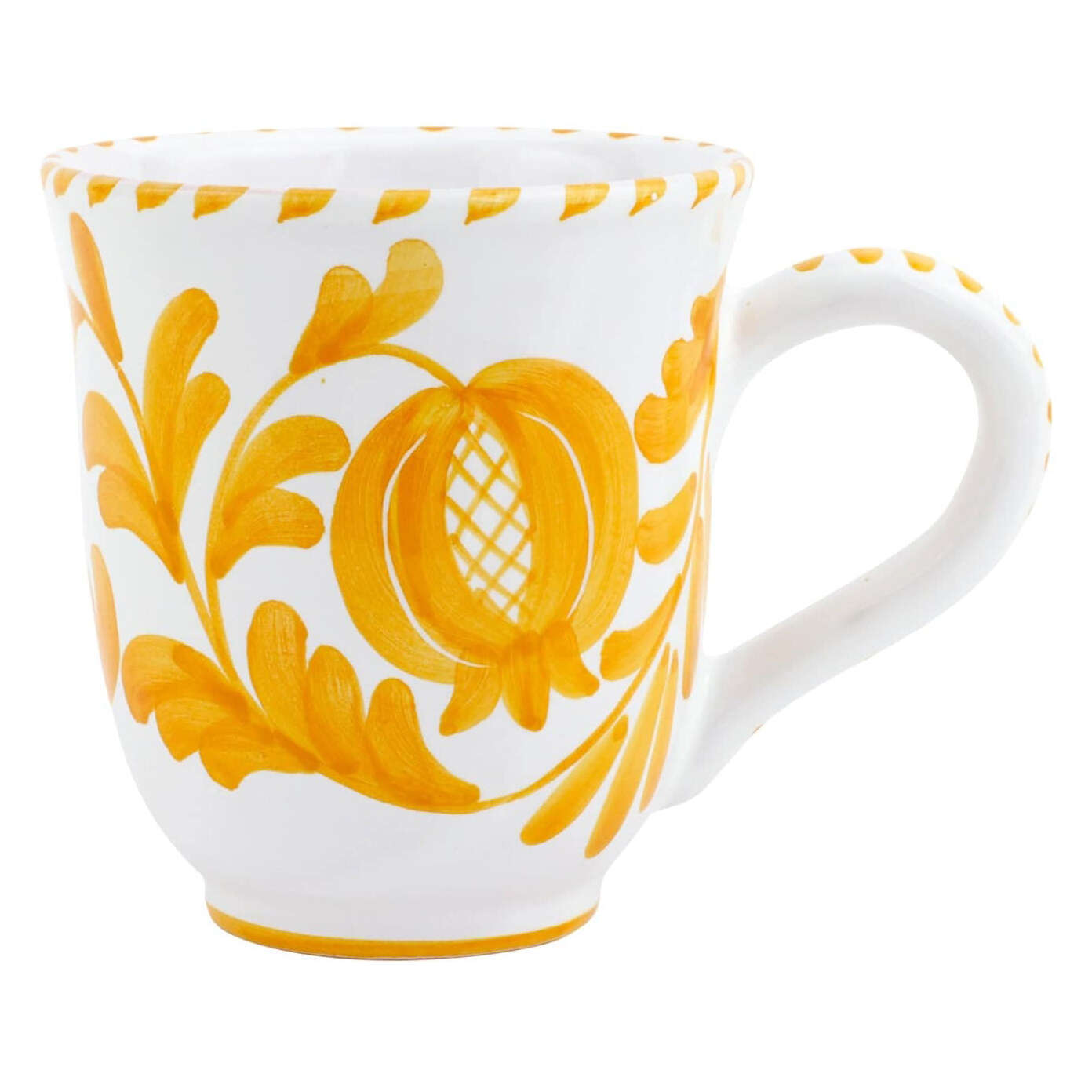 Handpainted on Terra Cotta in Umbria. Umbria is located in the center of Italy, and it is known for its sweeping landscapes, traditions, history, artistic legacy, and cultural influence. Umbria's ceramic history dates back to the Etruscans, and the ceramic style is characterized by bright colors, fine details, and a marriage of heritage and innovation.