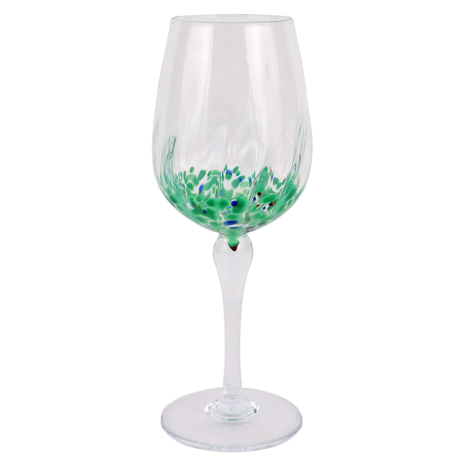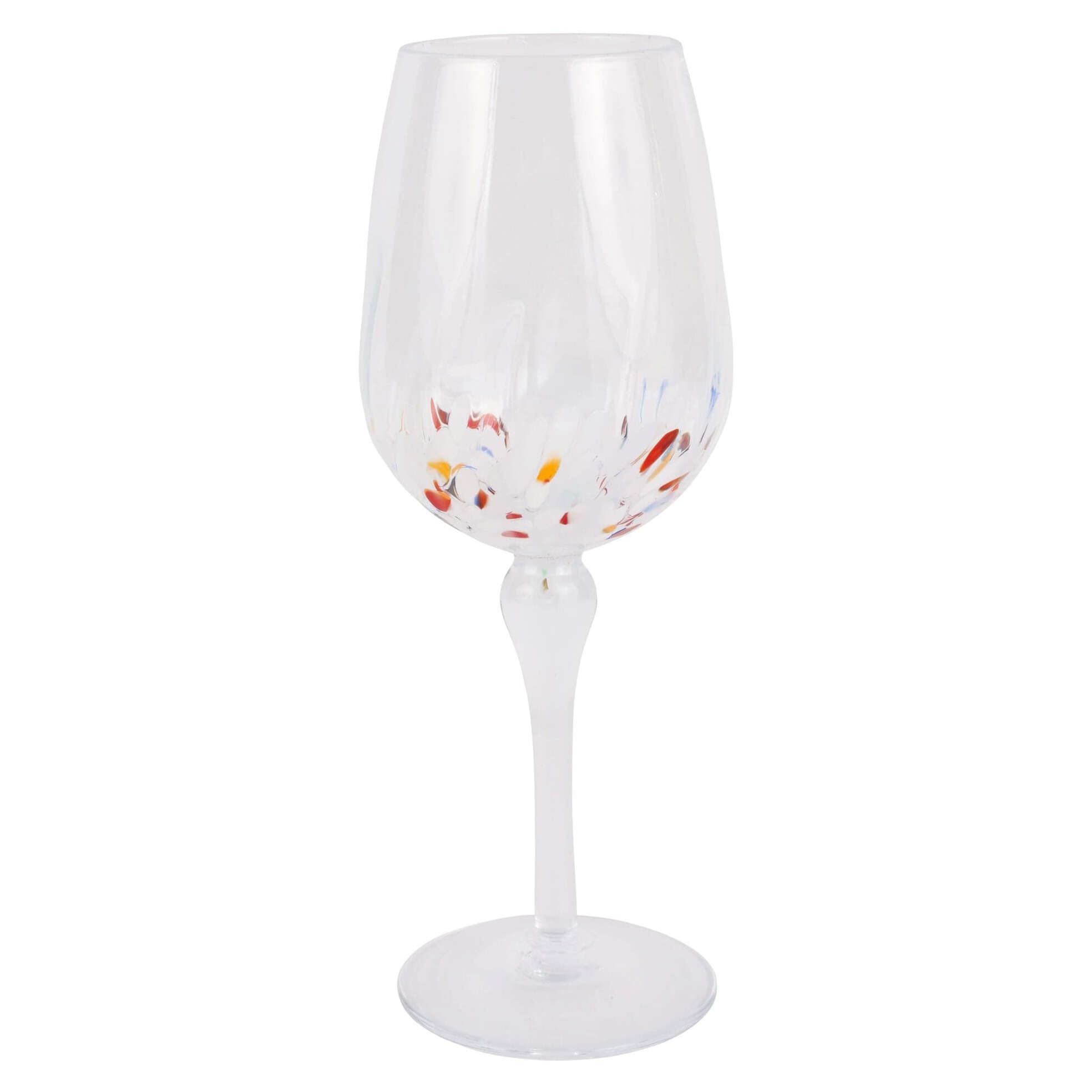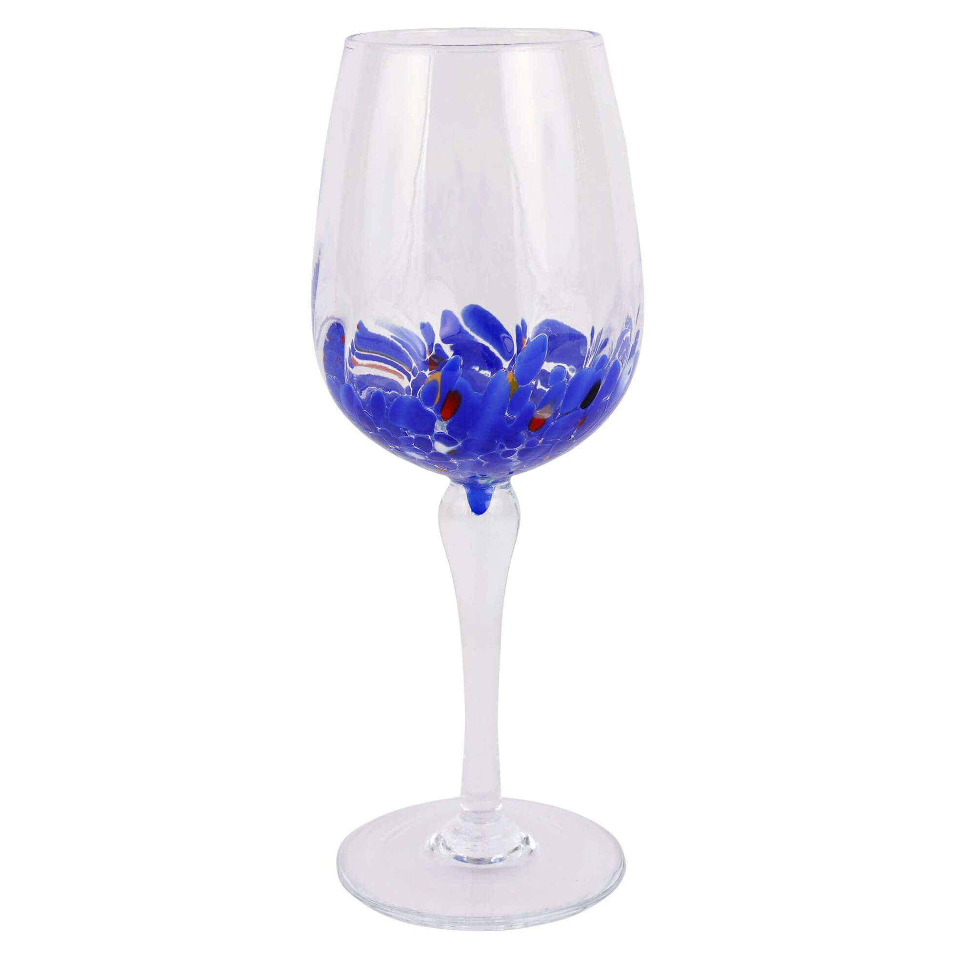 Dynamic streaks of blue adorn the mouthblown Chiara Wine Glass. Whether you go for a single color or a mix of the different Chiara hues, the confident ribbons of color create a unique and lively table.