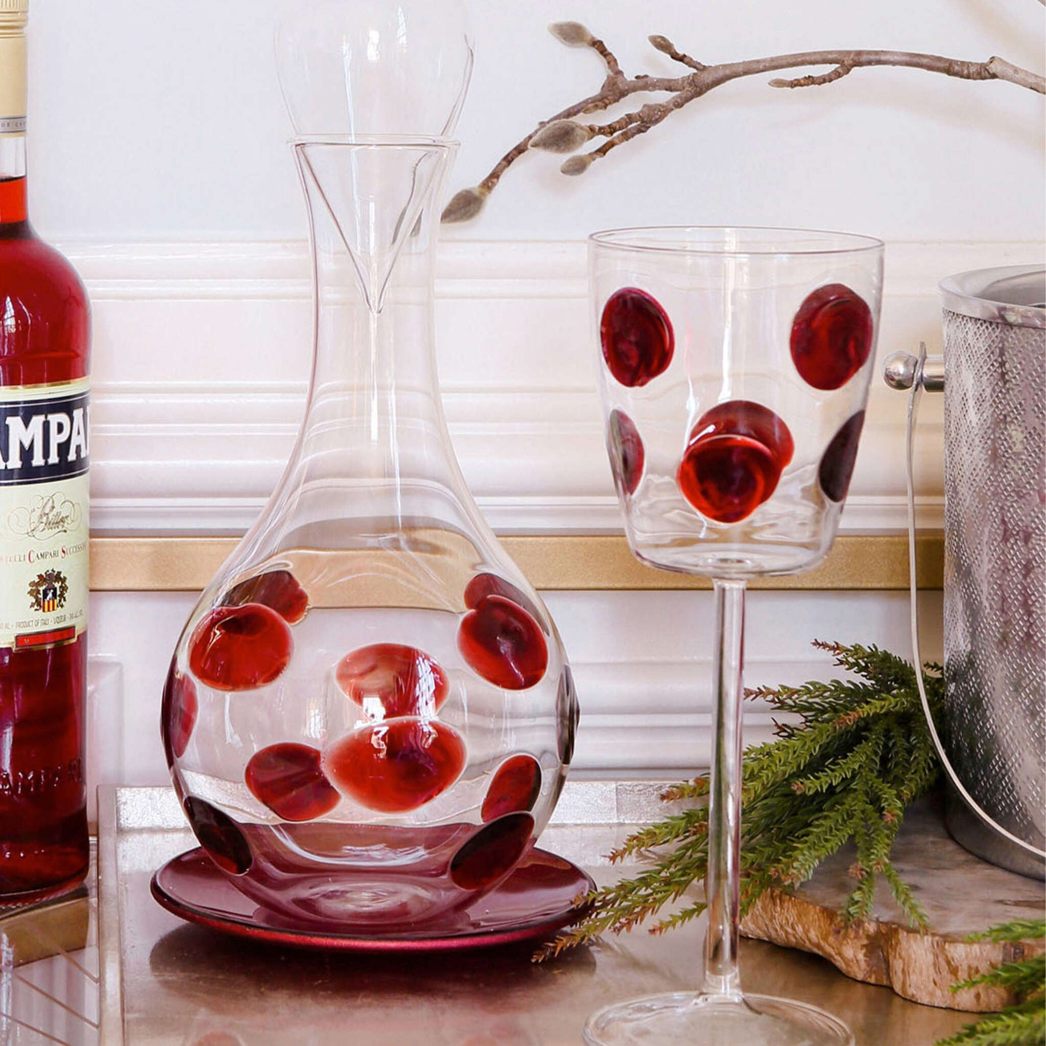 Dress up your daily glass of wine with the Drop Wine Glass. Intricately mouthblown in Veneto, this beautiful collection brings a playful, chic touch to your favorite barware assortment.