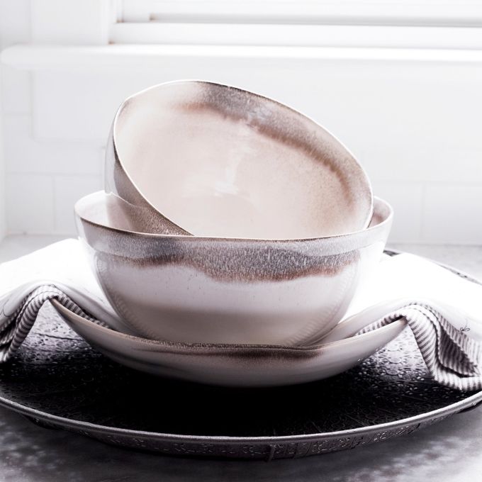 Versatile yet unique thanks to its handcrafted, organic shapes, the glossy white Aria collection is a sophisticated base suited for your everyday table.