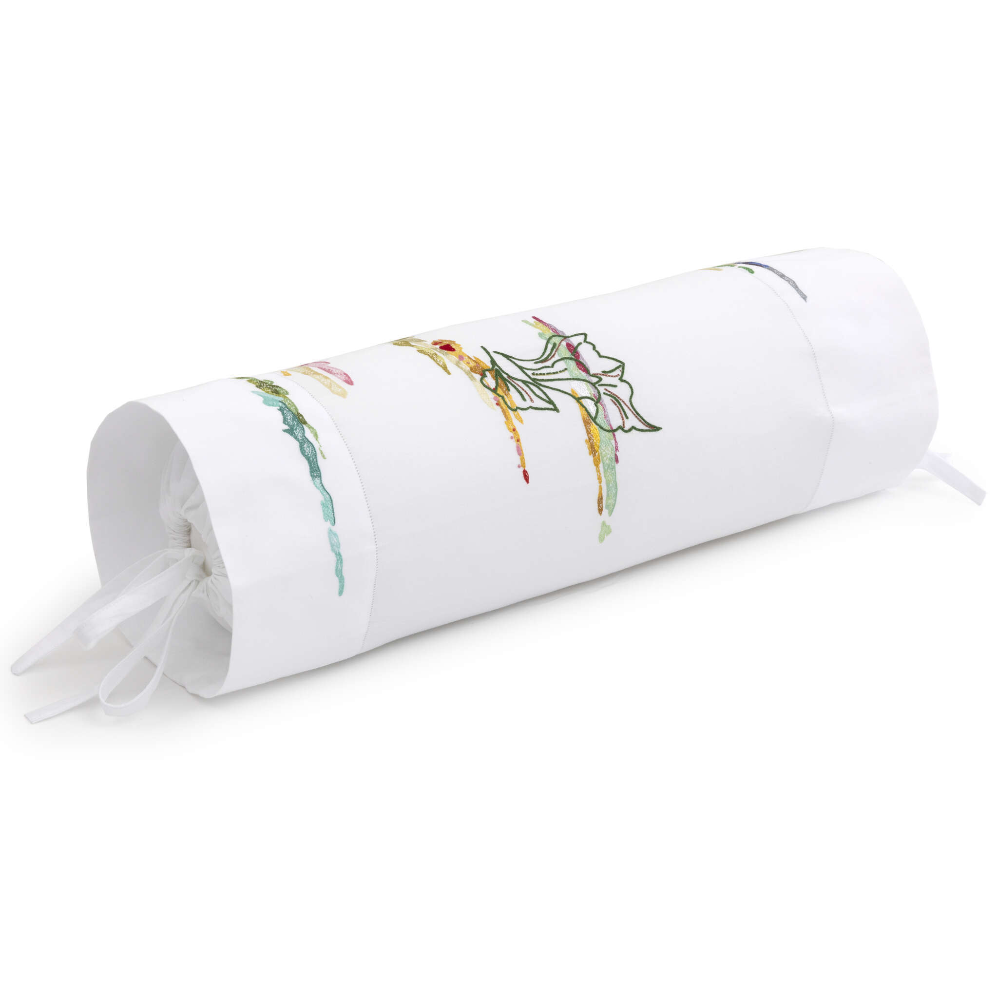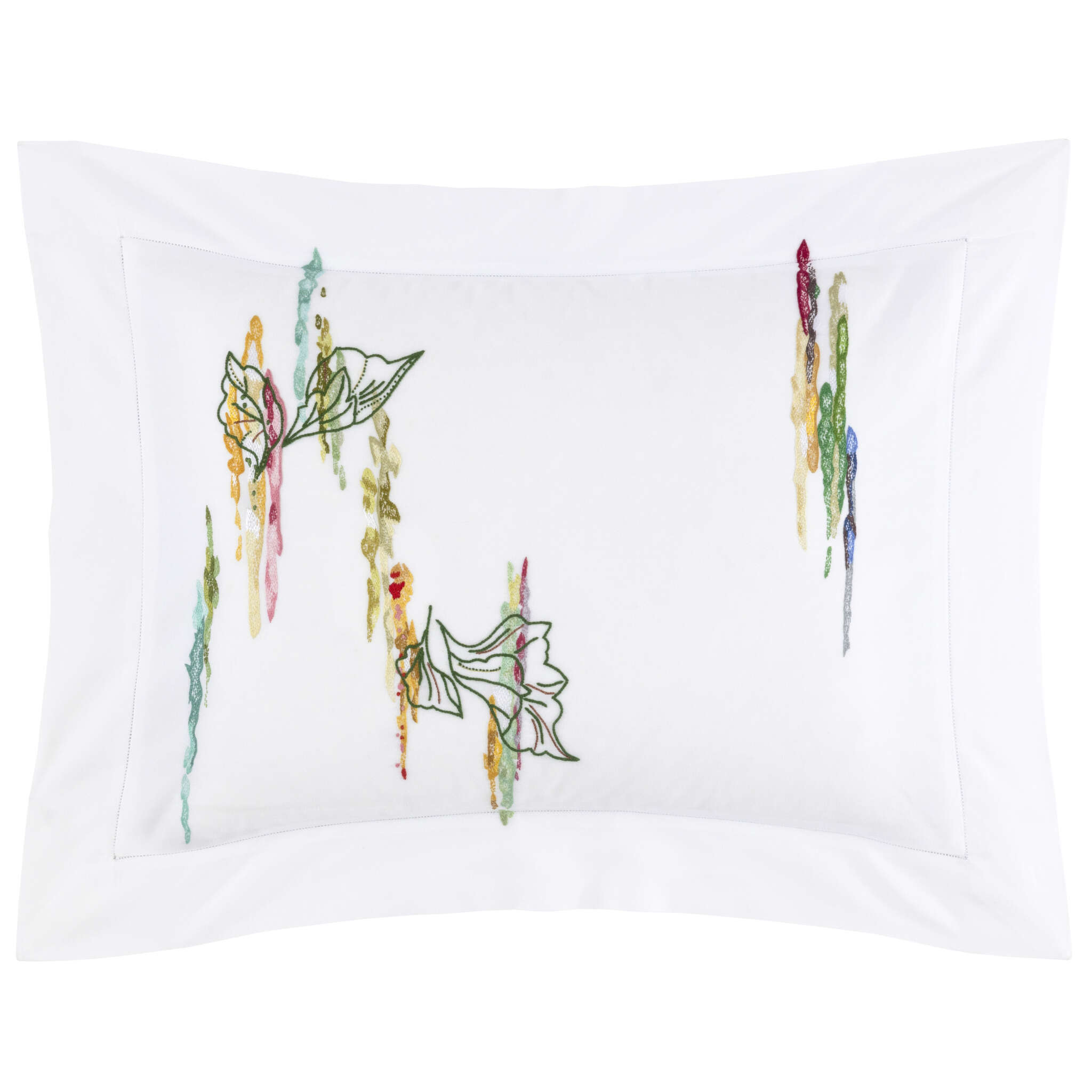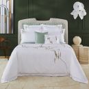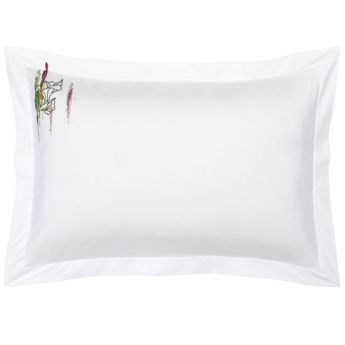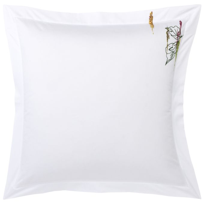 Hand embroidery bed linens in sateen, 100% extra long staple combed cotton sateen, 500 thread count.