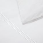 Double satin-stitch embroidered on white percale. This new design comes in many colours of timeless luxury. The crisp, fresh and matte feeling of percale highlights the lustre of the coloured embroidery.