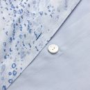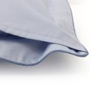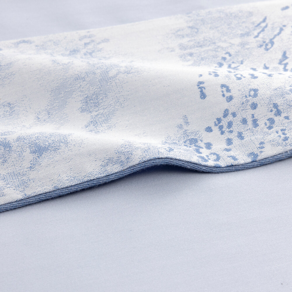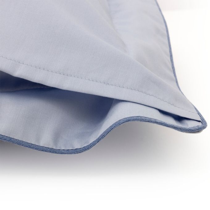 Flat sheet in Celeste plain color with 5" hem in damask fabric, finished with piping.
