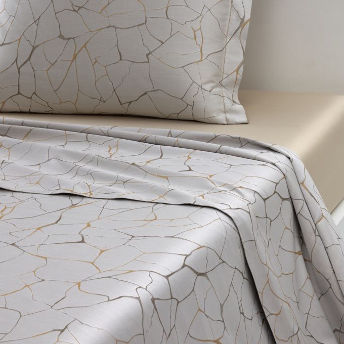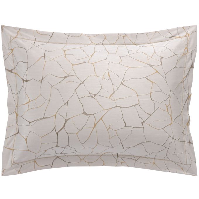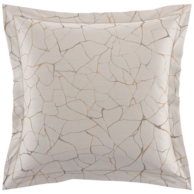 A quiet expression of mastery and material, the Fragment bed linen collection by Yves Delorme Couture draws on Japanese craftsmanship, where imperfection is part of the story. Inspired by kintsugi, the art of mending with gold, a crackled-glaze jacquard is elevated by soft golden shading. Crafted from 100% organic cotton sateen, Fragment is a meditation on resilience and refined design.