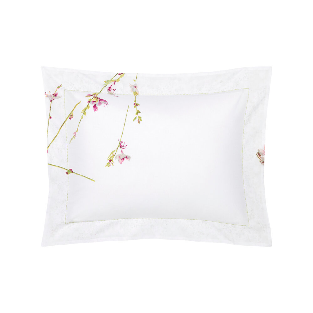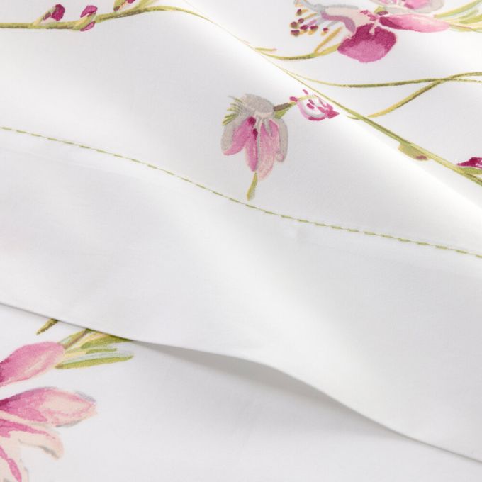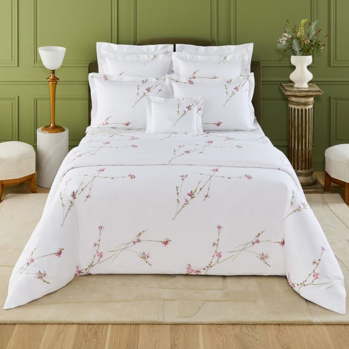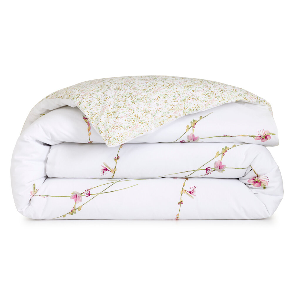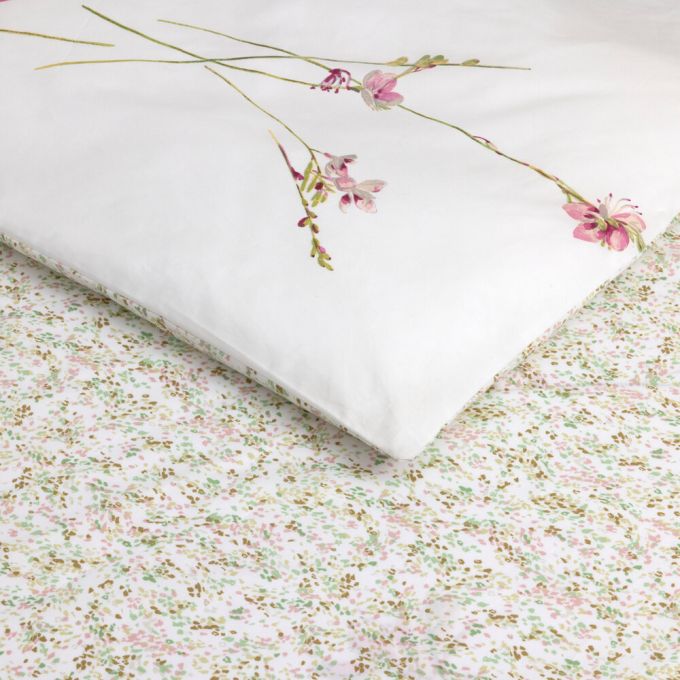 Garden flowers with the grace of butterflies. Airy branches printed on cotton percale.