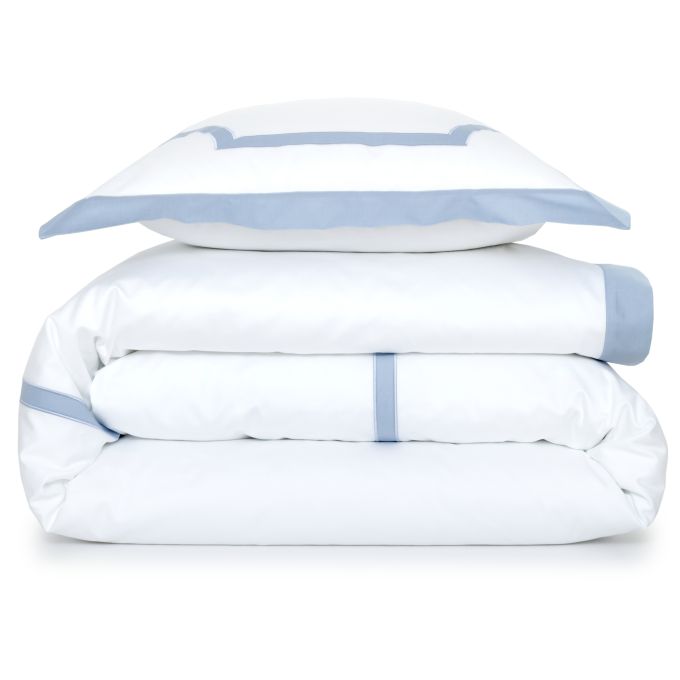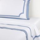 Paying homage to the historical figure Baron Haussmann, who was responsible for the renovation of Paris under Emperor Napoleon III, in the 1850s and 60s, this bed linen range by Yves Delorme Couture is subtly decorative. Drawing on decorative architectural elements, the design is crafted from 100% Supima cotton sateen in white and adorned with contrasting appliques and linear embroidery in baby blue.