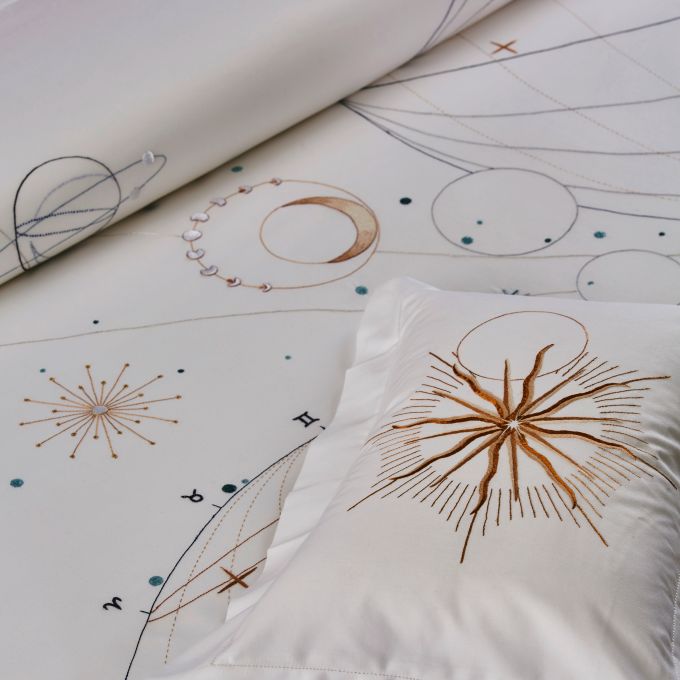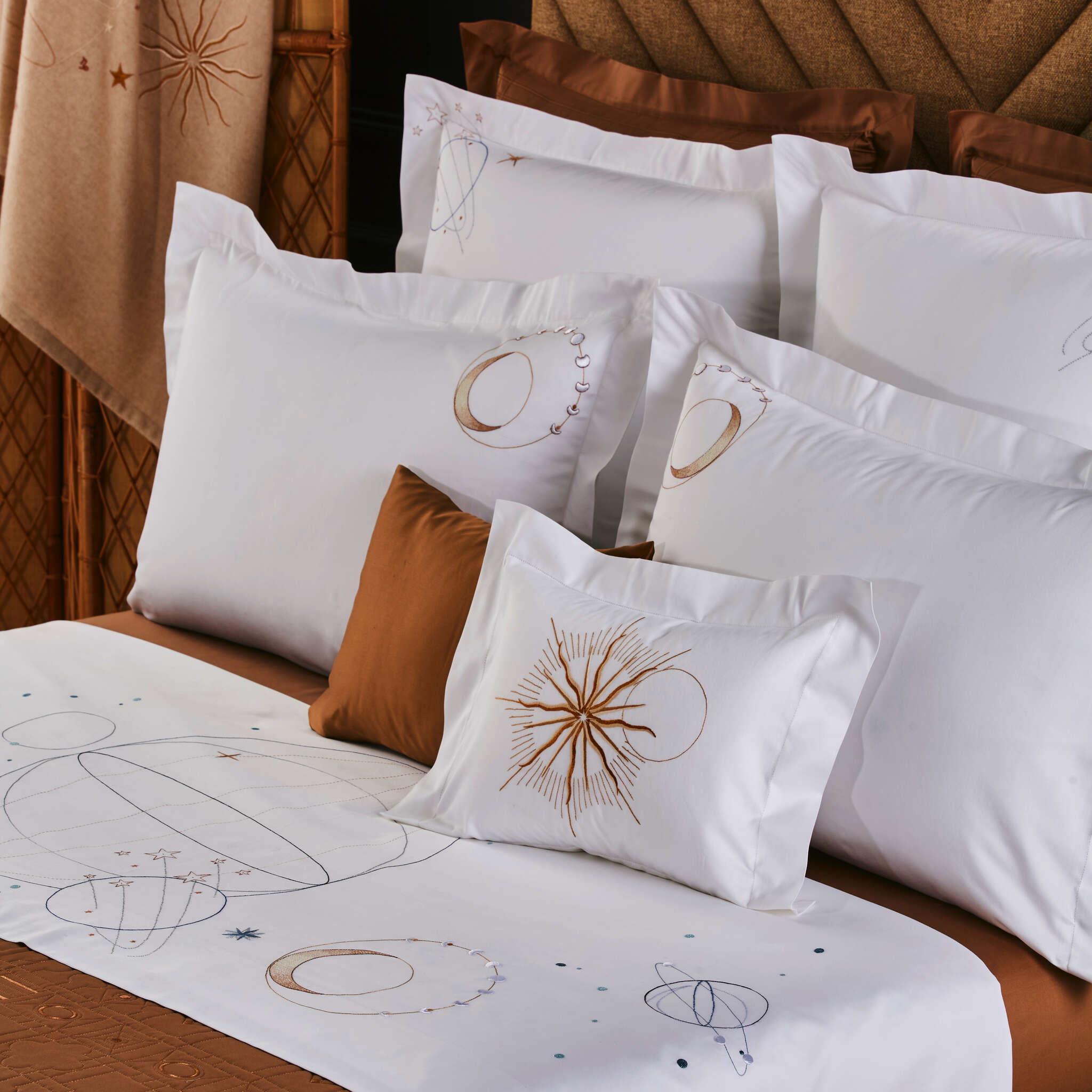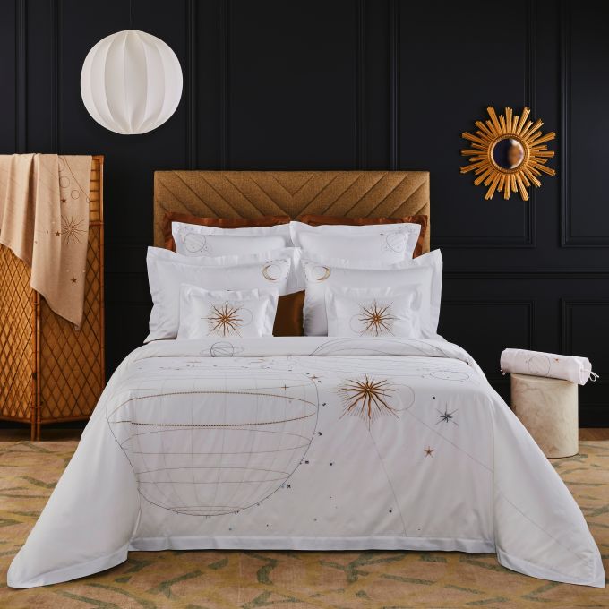 The Olympe design is signed Yves Delorme COUTURE, an exclusive collection, handmade and entirely bespoke.