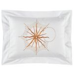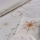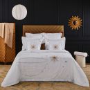 Duvet cover, flat sheet 5" double facing flounce with tailored corners, 21x 30 cm and 56x 56solded by 2 - because of right/left embroideries - boudoir sham and neckroll.