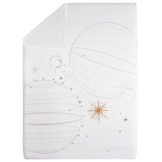 Louis XIV made the sun his symbol. This embroidered design is an imaginary cosmic promenade with the sun at its center, imposing order and light on the kingdom of the Gods.