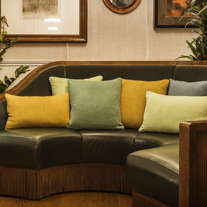 A classic and versatile cushion cover by Yves Delorme, easily paired with any interior owing to the myriad of its colour variations. The linen fabrication in solid tones lends the design a natural and organic look, which in turn, will imprint on your home. The design is framed by a contrasting piped finish.