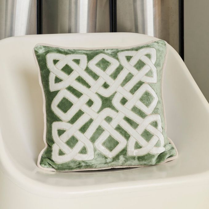 Like timeless calligraphy. Genoa velvet cushion covers with interlacing pattern. Velvet piping finish and zipper closure at bottom.