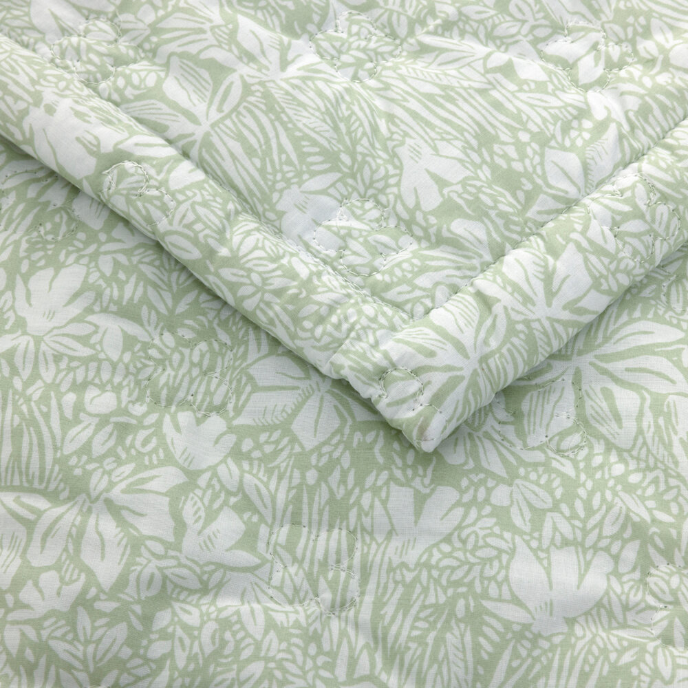 Printed quilted coverlet, floral style stitching, 1" hem finish.
