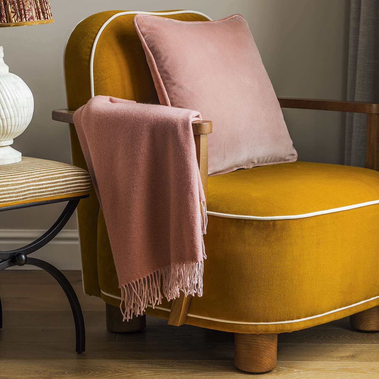 A sofa cannot be cosy without being dressed in a sumptuously soft and enveloping throw one can wrap themselves and relax while reading a book or watching a movie. And what's softer than a pure wool knitted to a fine weave as in the case of the Club throw by Iosis. Two shades of thread creating a caviar effect form each variation of this soft, contemporary and luminous throw.