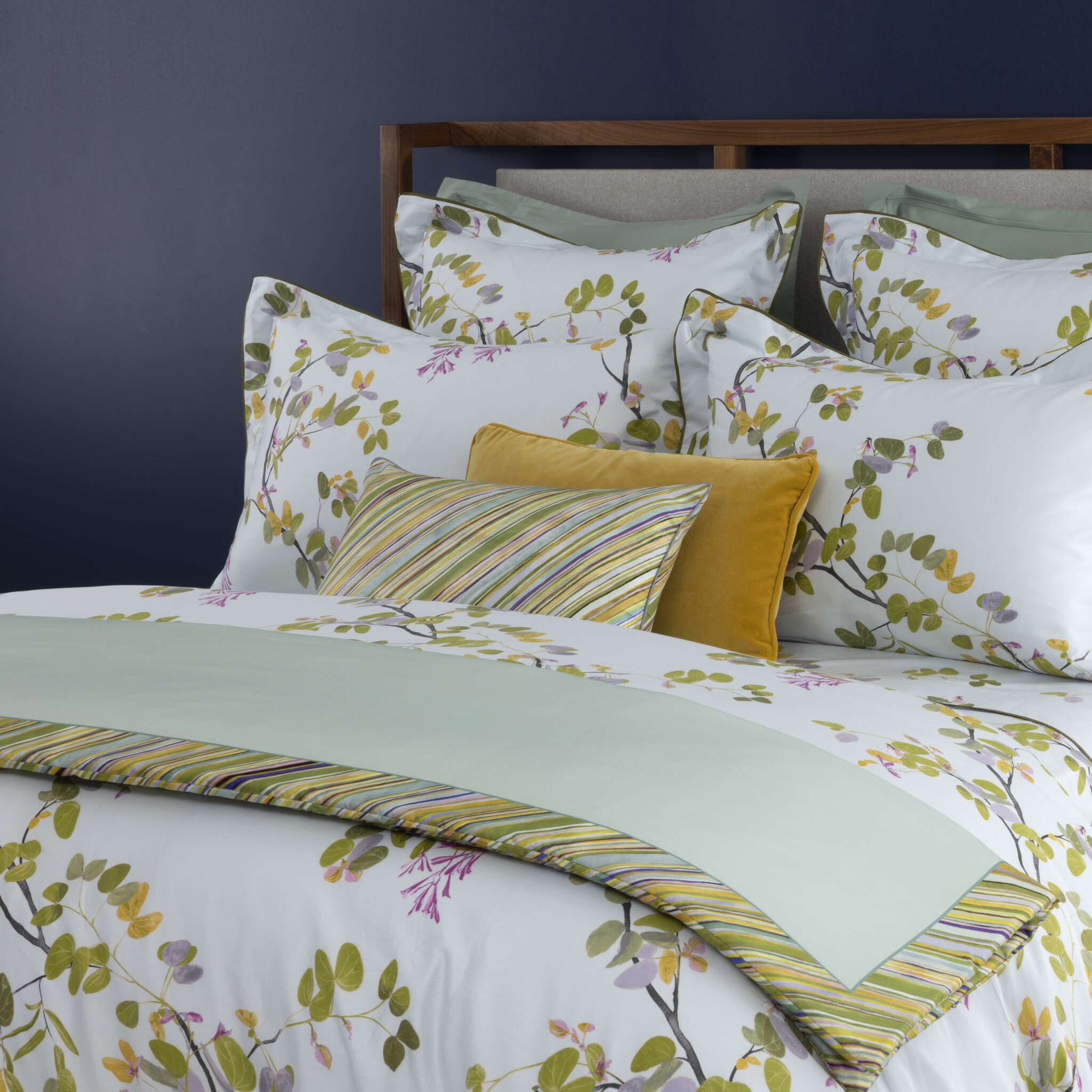 The rustling of wings or leaves. Close your eyes and see the colours flutter like fireflies, in touches of watercolour from green to lilac, on cotton sateen.