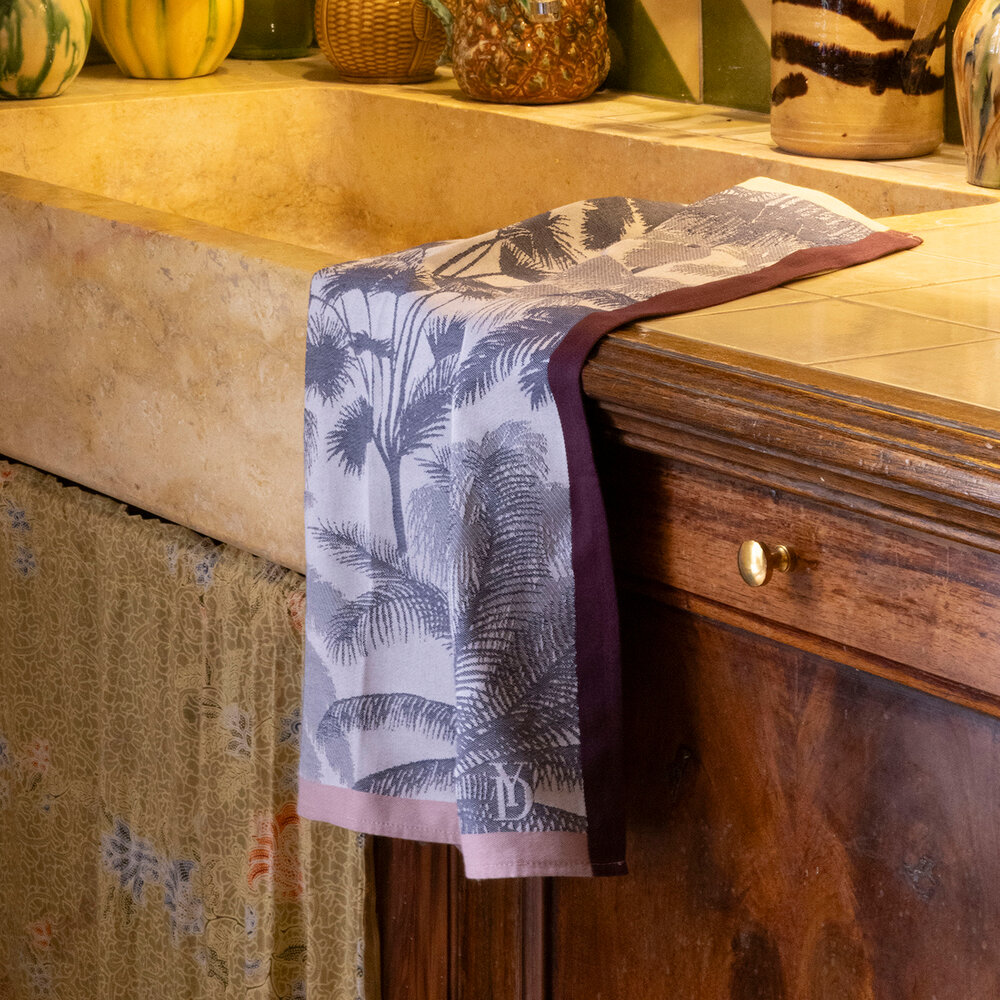 Tropical scenery and graphic charm, the Palma tea towel transforms everyday gestures into a lush getaway. Its palm tree motif, inspired by botanical engravings, is drawn tone-on-tone in a vibrant, contemporary composition.