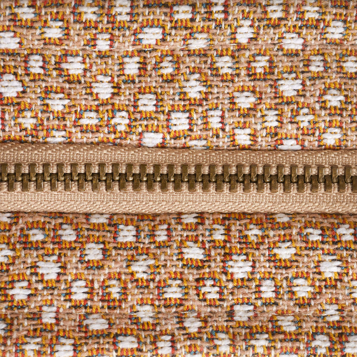 Tote in tapestry with inside lining in cotton satin. Zipper closure and cord with a button.