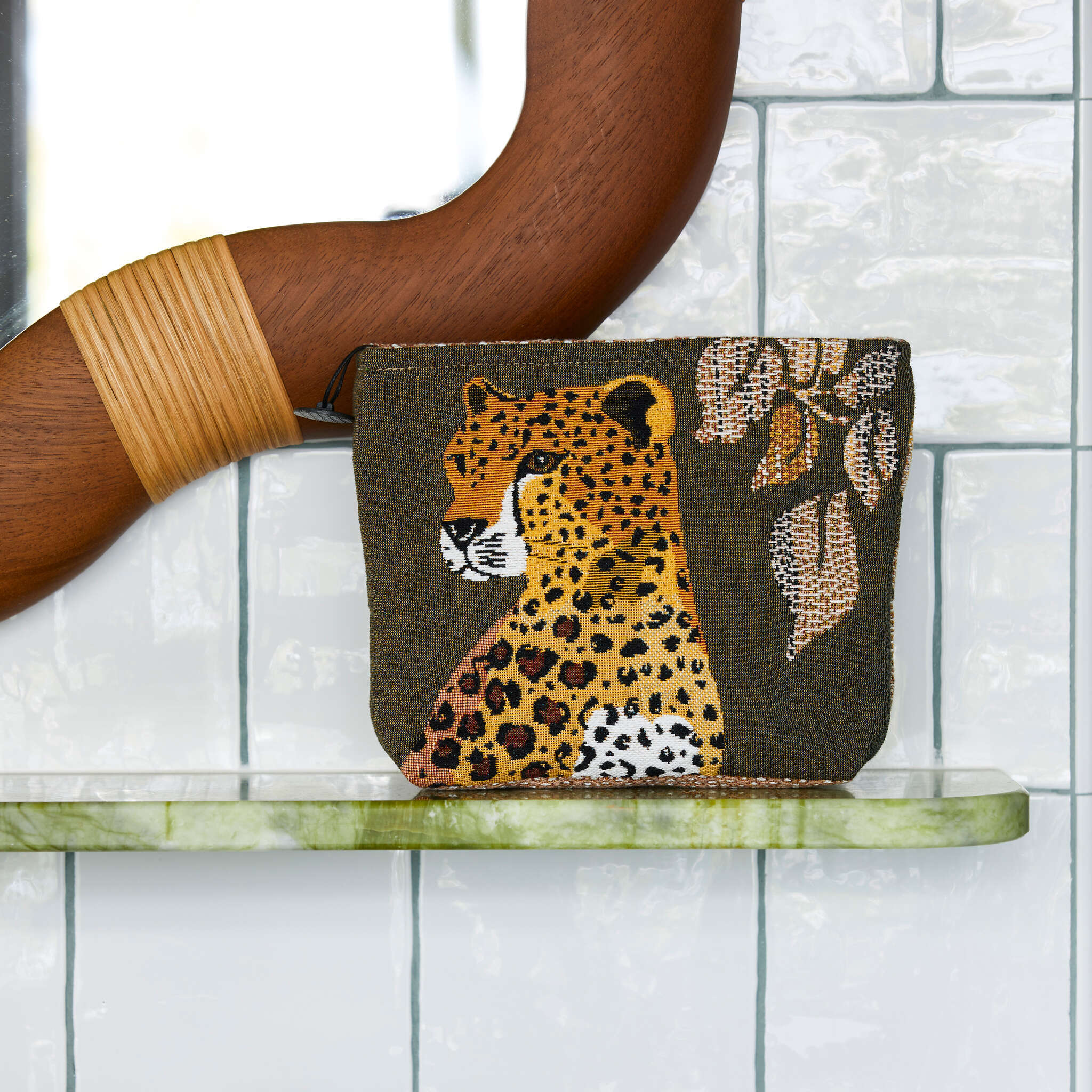 Mirrored or in a large portrait, these stately panthers are surrounded by shaded foliage and a shagreen patterned border.