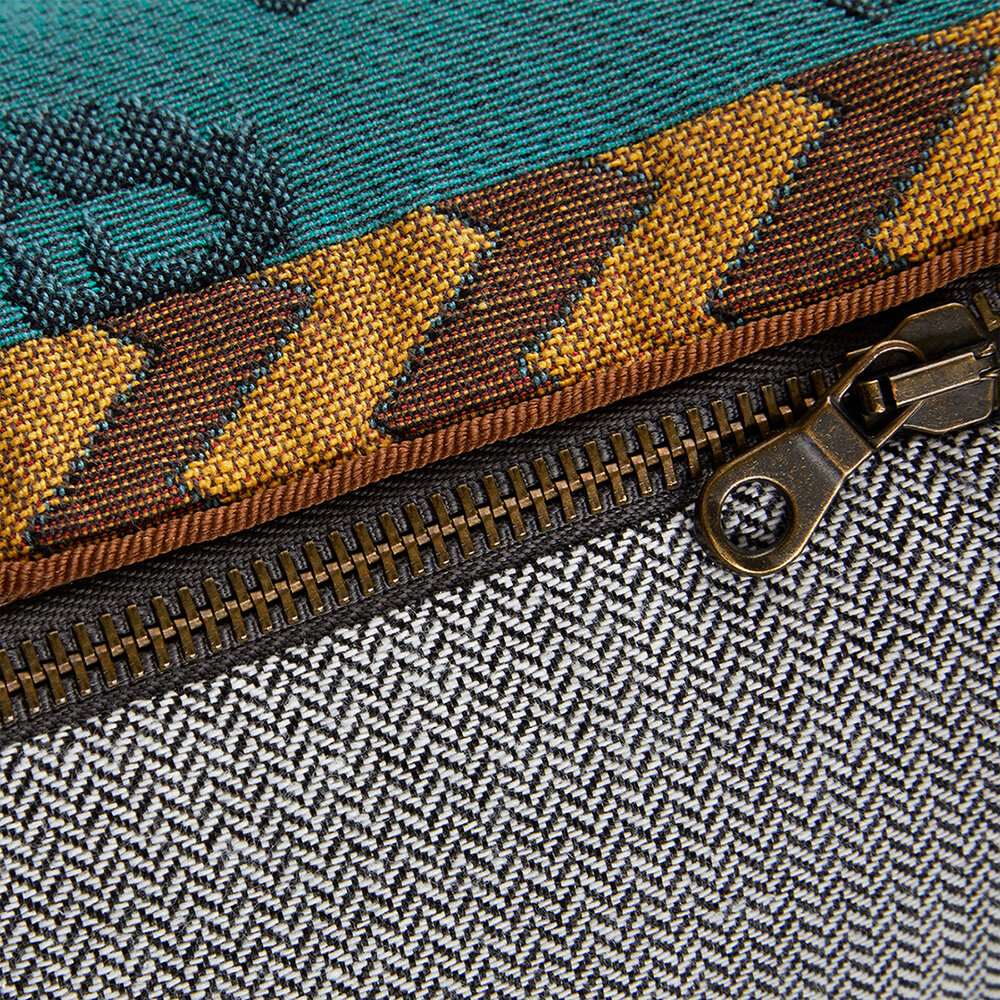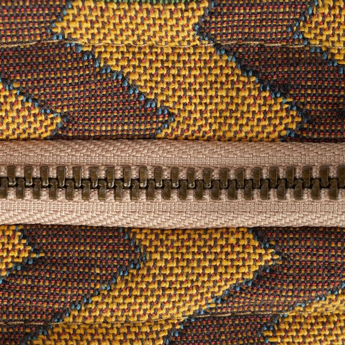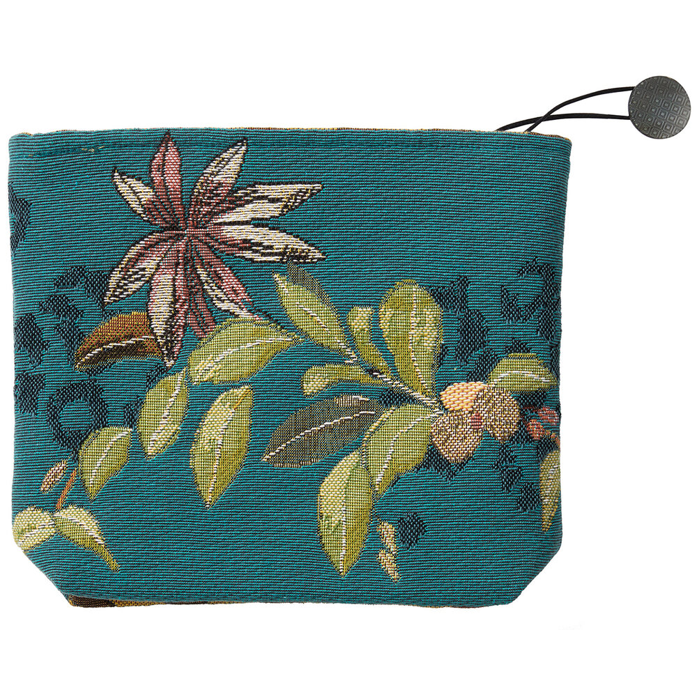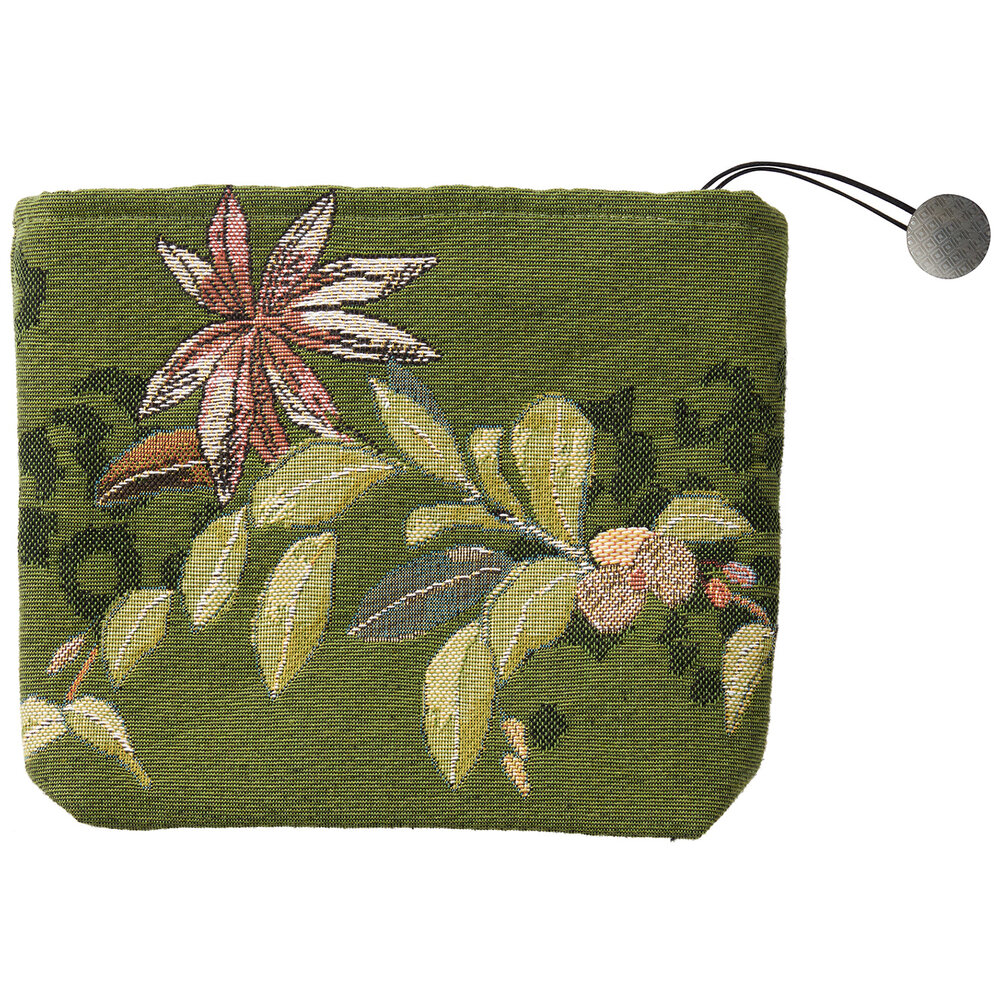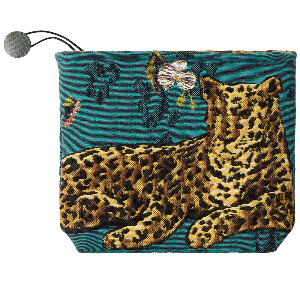 In the lushness of an indolent dream, a panther stretches silently among the orchids. Inside lining in cotton sateen, zipper closure and cord with a button. Front and inside: majority cotton.