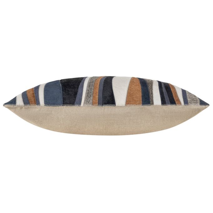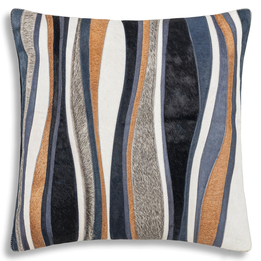 Experience the allure of natural artistry with the Cloud9 a stunning fusion of organic textures and vibrant hues. Crafted from luxurious hair-on hide, its unique patchwork design dances with shades of blues, tan, grey, and navy, creating a captivating mosaic of color and depth. The soft cotton back adds a touch of warmth and comfort, while a discreet hidden zipper enclosure ensures effortless elegance. Perfect for adding a sophisticated, earthy charm to your home, this pillow is a celebration of nature's beauty reimagined for modern living.