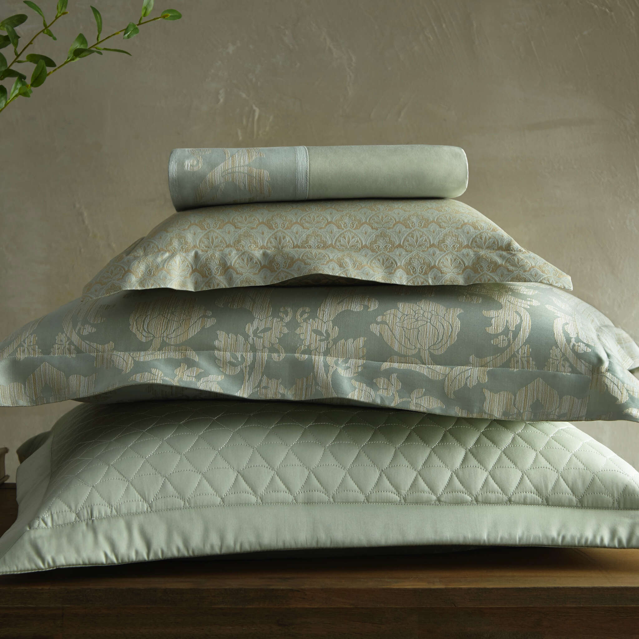 Italian sateen and jacquard.