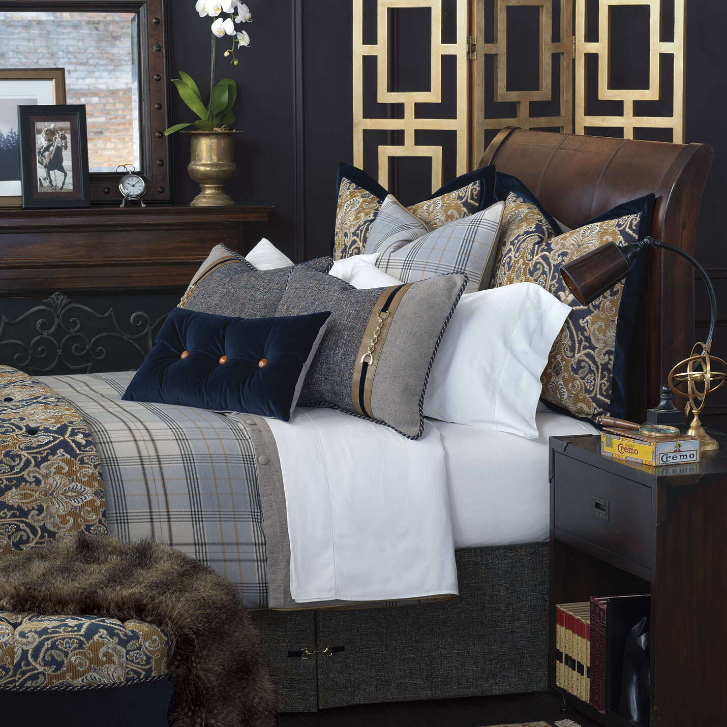 Get whisked away to a 19th-century aristocratic mansion with luxurious Arthur. Its handsome plaids create a tailored backdrop worthy of Savile Row’s bespoke suit makers while richly colored floral textiles recall sumptuous medallion-pattern rugs. Adorn the regal collection with lavish velvet pillows or cross-merchandise with the faux fur Mogli Minx throw for added texture.
