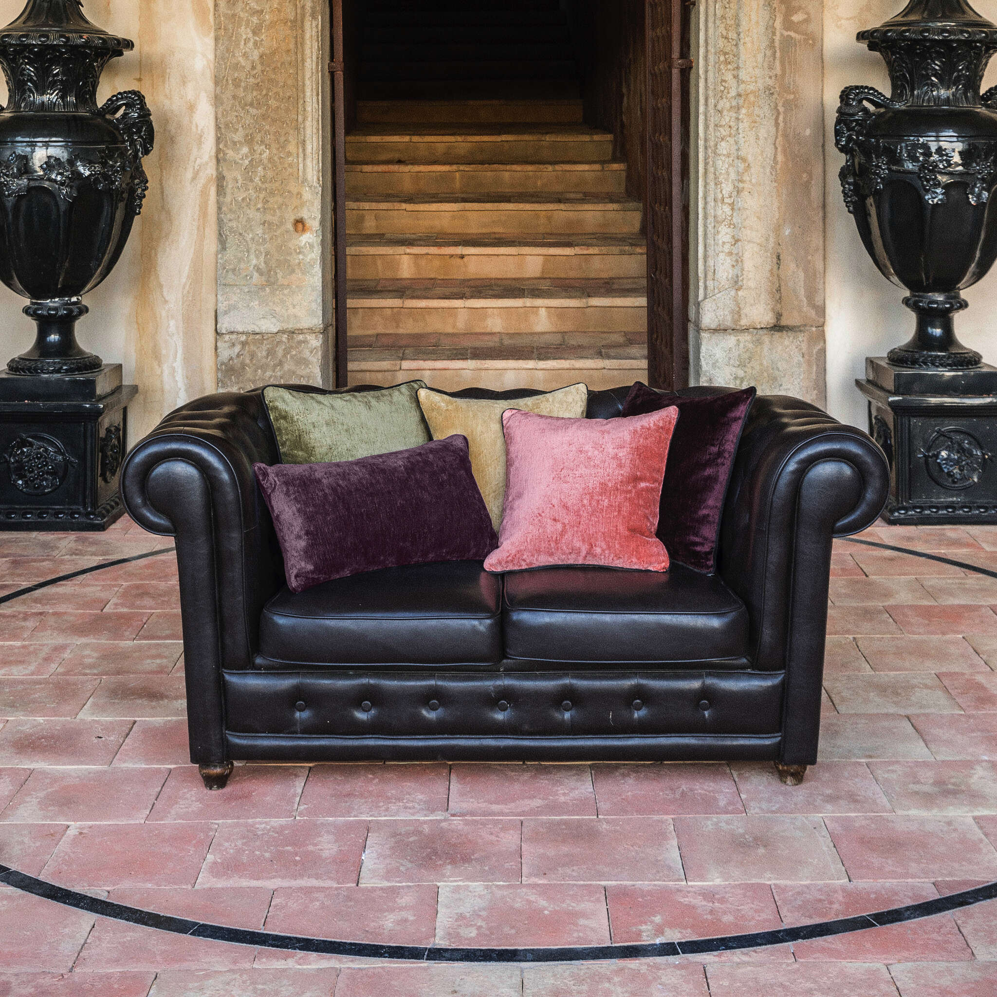 A palazzo spirit; an irregular and matte texture characterises this generous linen velvet in bright shades. The cushions are highlighted with a dark velvet piping.