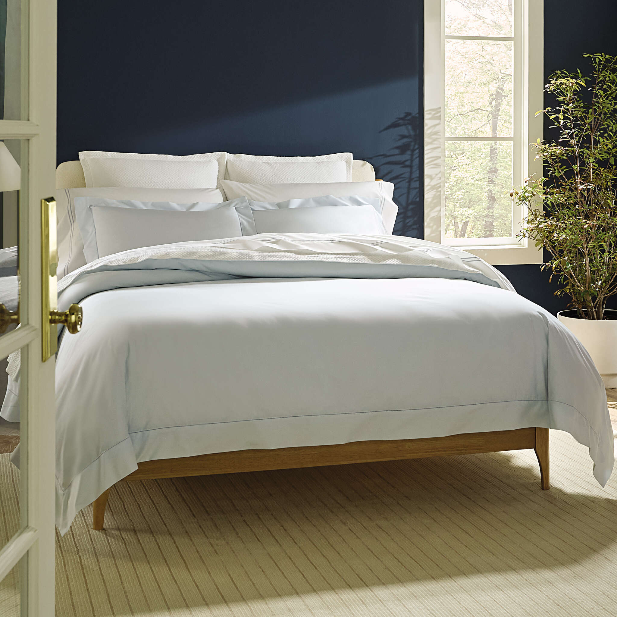 Celeste, our best-selling percale bedding, is woven in Italy from pure, extra-long-staple cotton for a super soft hand. With minimal, simple hemstitching along the sheet, it welcomes you to relax in its cool comfort for the dreamiest of nights.