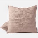 The simplicity of linear hand-embroidery is celebrated in the subtle stitching that dots this solid landscape of Crinkled Percale™ fabric. The fog-washed hues of natural plant life along the shoreline of Northern California are translated into channels of complementary-colored threads hand-stitched into horizontal lines throughout. Organic cotton batting adds a plush, medium-weight warmth.