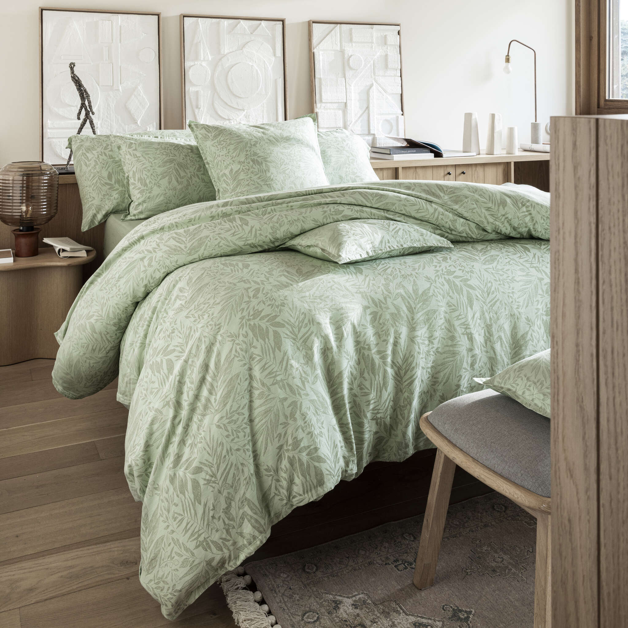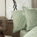 The small leaves in jacquard weave unfurl all over for a comforting opulence.