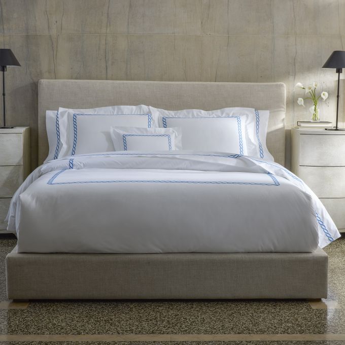 The Classic Chain collection offers an updated take on an iconic Greek motif. Embroidered on crisp, 520 thread count Ceylon cotton percale, this time-honored design comes in an array of shades and exudes a quintessentially classic appeal.