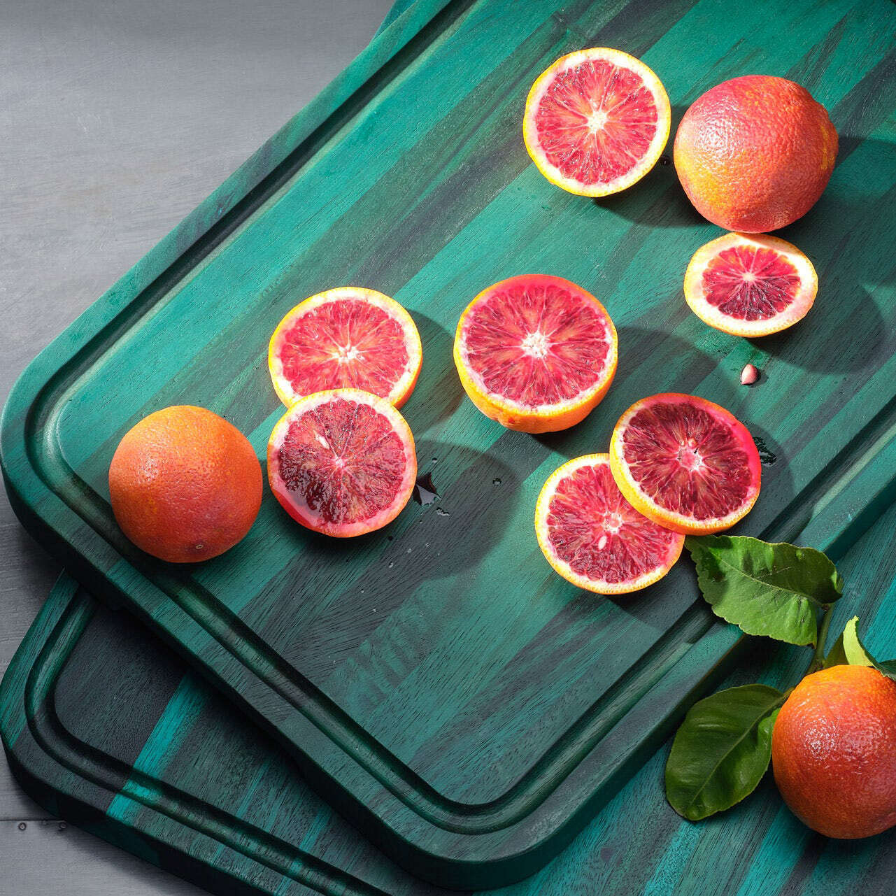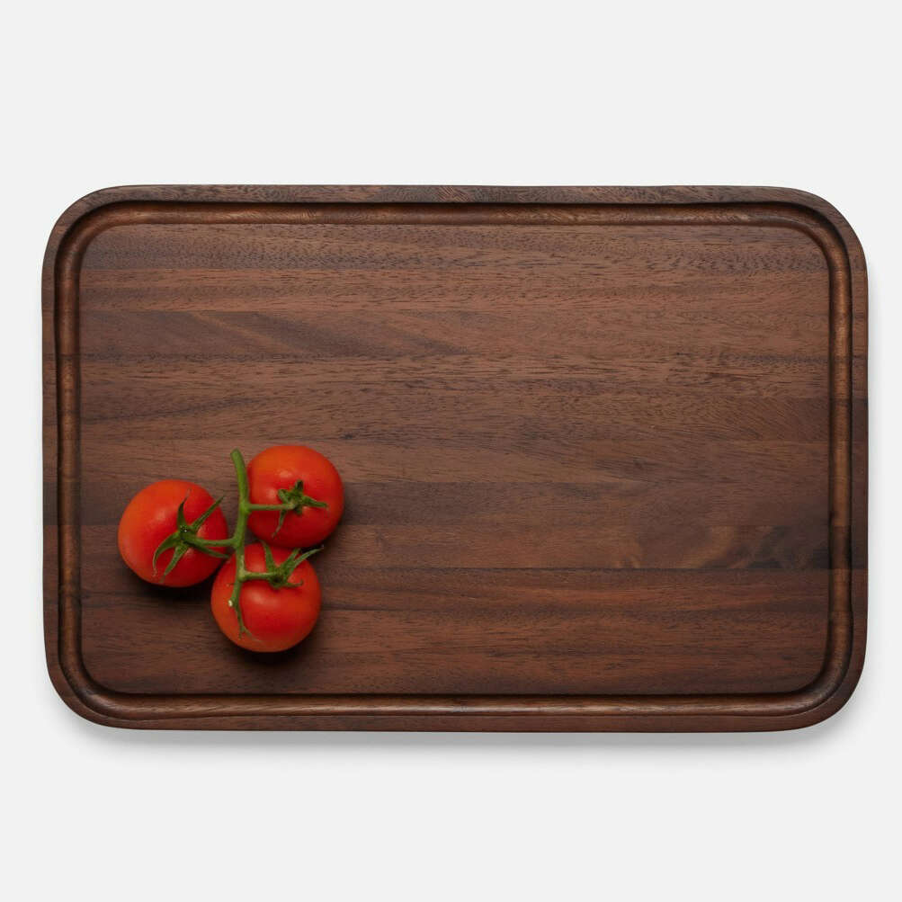 Warm natural wood with a strong horizontal grain makes this cutting board worthy of permanent display in the kitchen. As practical as it is beautiful, each tray has an indentation around the perimeter that captures flavorful juices.