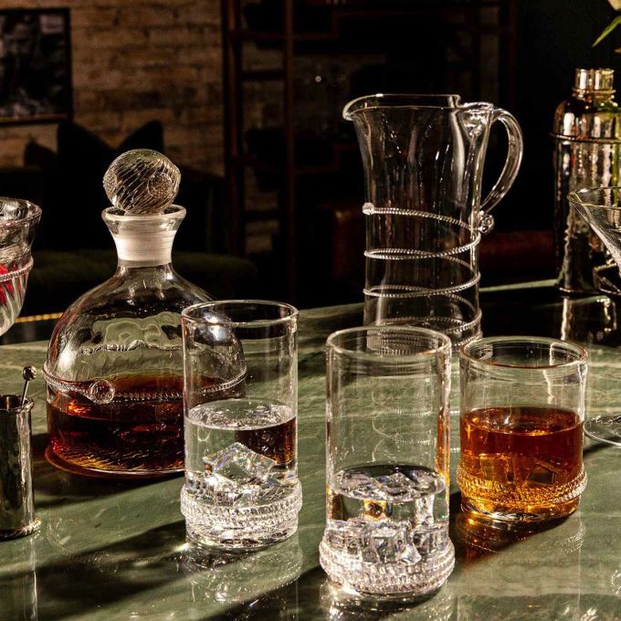 From our Dean Collection - Cheers! Tinkling ice cubes, memorable cocktails and a room full of laughter makes an effervescent Saturday night. Our handsome, mouth blown glass grounded with a subtle glass rope base, compliments the evening with its sturdy feel and sparkling beauty. Raise your glass!