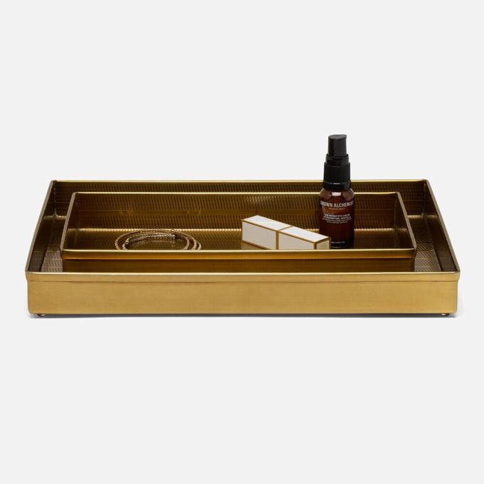 Sleek metallic finishes bring a dash of drama with the Denver collection. Alternating etched stripes ensures each piece will stand out in a sea of sensational statements.