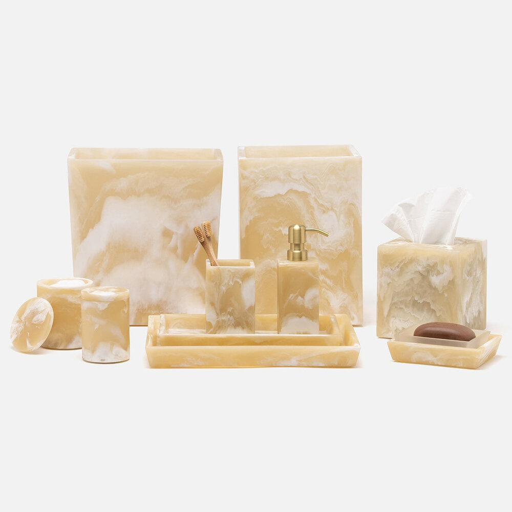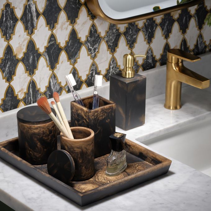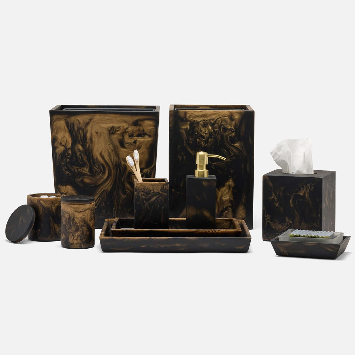 Complete a bold and elegant look with our Duluth collection in swirled resin. Variations in patterns and gold tones result in each piece having unique character.