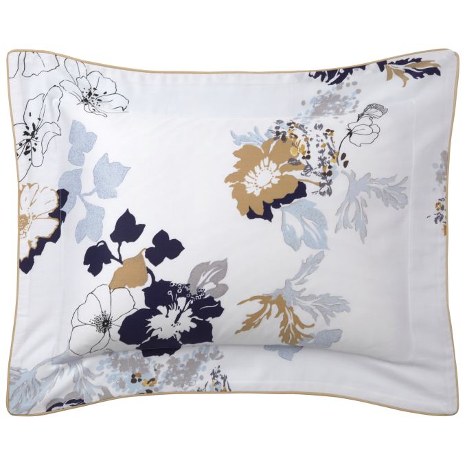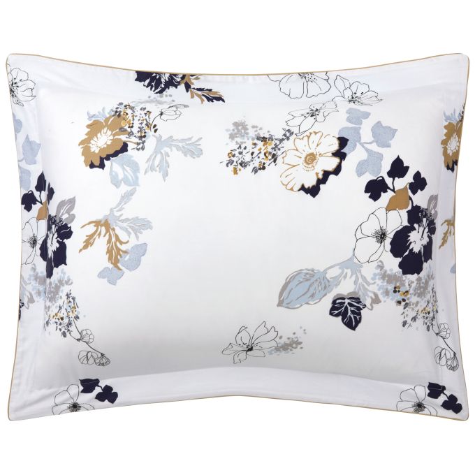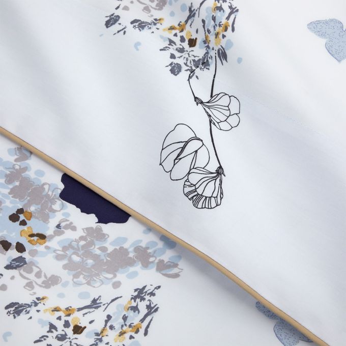 Printed and reversible bed linens on 100% long staple combed organic cotton sateen, 300 thread count. 12 couleurs pour le motif principal, 1 couleur pour le motif coordonné.