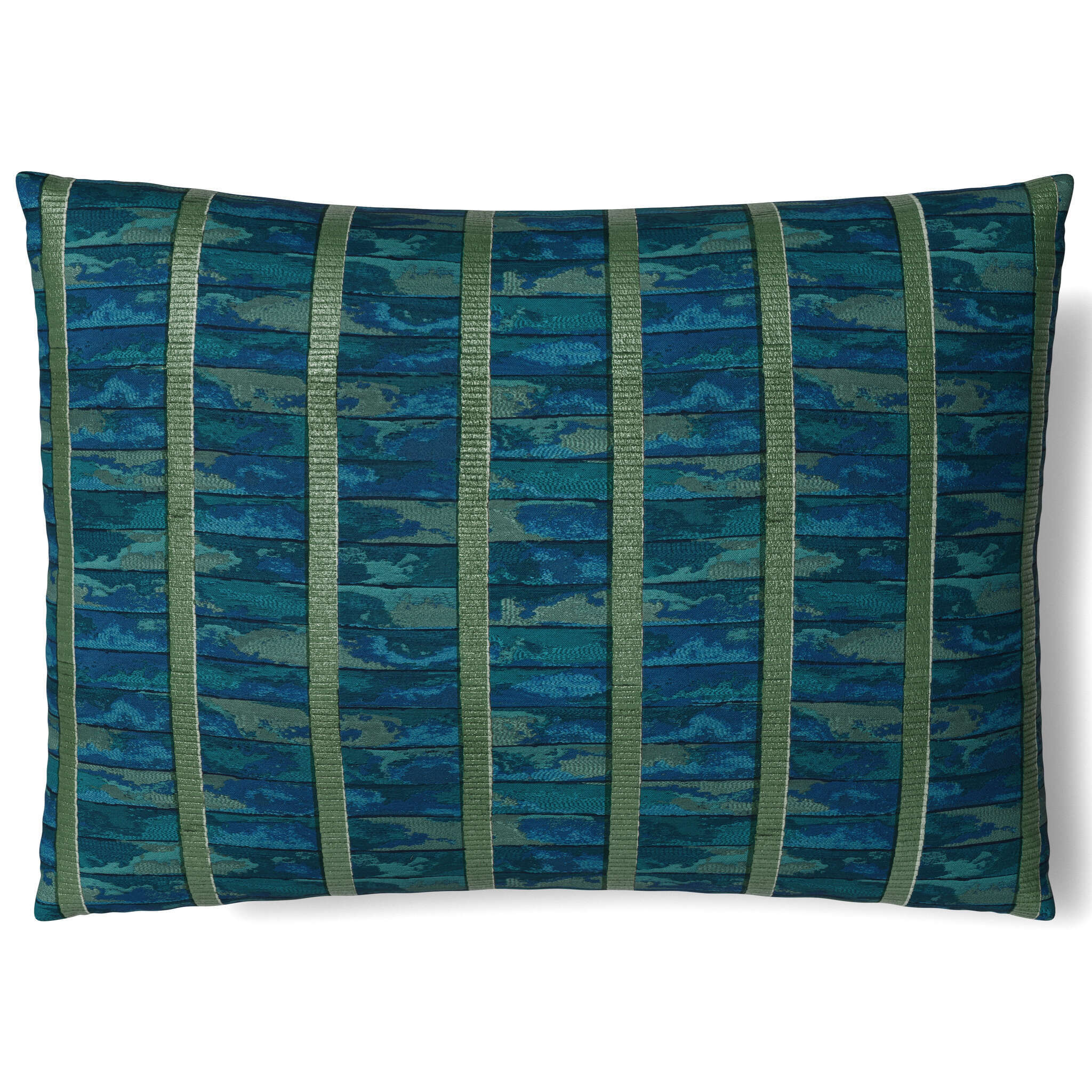 Inspired by a Faience panel from Egypt's OId Kingdom period, we reimagine the shades of azure in a jacquard with embroidered lines.