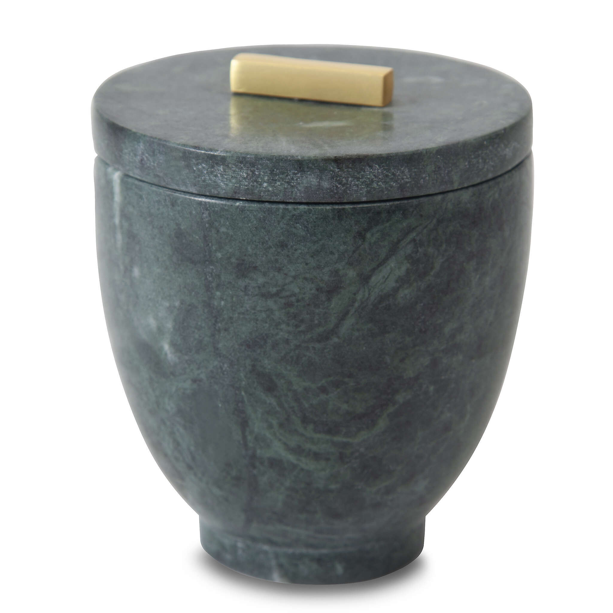 Brimming with opulent allure, the Esmeralda Collection, made from green marble, is the epitome of elevated elegance with its natural veining in deep shades of emerald and eucalyptus. Adding to the luxurious nature of this collection, the cotton jar, tray, and lotion dispenser feature glamorous golden accents, while the tumbler, lotion dispenser, cotton jar, and soap dish feature small pedestal platforms in their designs, adding to this accessory set's completely captivating appeal.