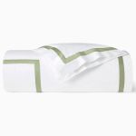 The understated sophistication of Estate's crisp white, Italian-woven long-staple cotton base is an immaculate backdrop for lustrous sateen appliqué detail, beautifully bordering this collection to create a sense of tailored elegance.